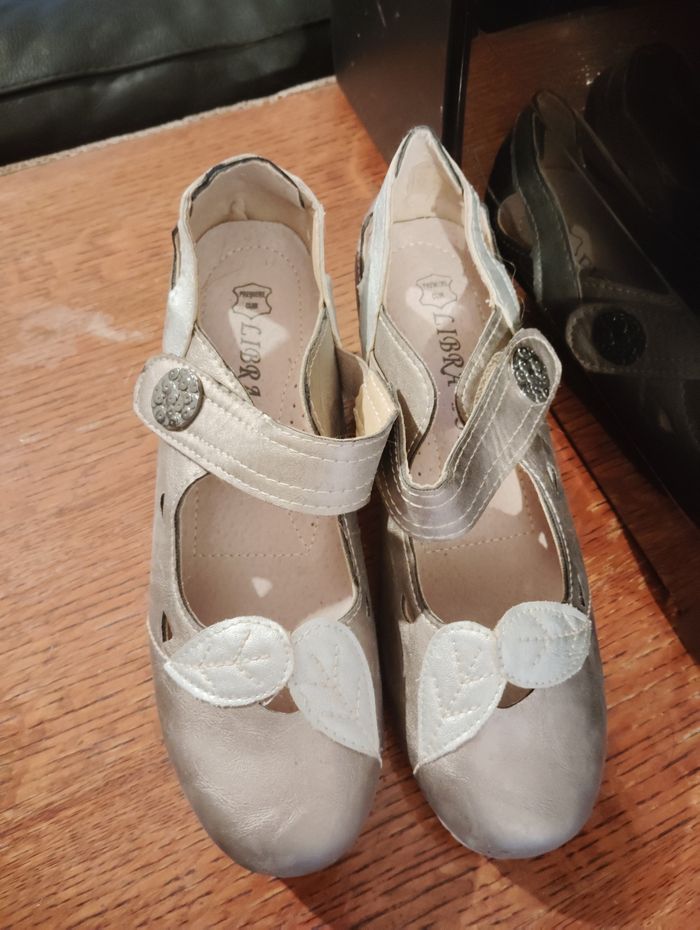 Chaussures intérieur cuir taille 38 un peu bronze gris Jamais porté car taille de pied qui a augmenté pendant la grossesse Comme neuve Autre coloris disponible sur le profil