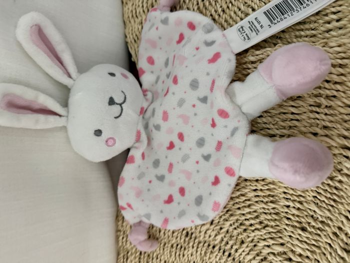 Doudou lapin Blanc et rose fleuris Tom & Kiddy Bisous D'Ange - photo numéro 1