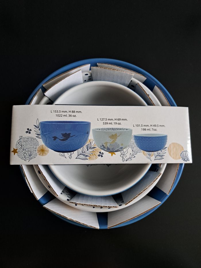 Lot de 3 coupelles La Petite Sirène 🧜‍♀️. The little mermaid. 💠 Contenance du bol de petite taille : 198 ml environ 💠 Bol de petite taille : H 5 x Diam. 10 cm environ 💠 Contenance du bol de taille moyenne : 535 ml environ 💠 Bol de taille moyenne : H 7 x Diam. 13 cm environ 💠 Contenance du bol de grande taille : 990 ml environ 💠 Bol de grande taille : H 9 x Diam. 15,5 cm environ 💠 En céramique 💠 Produit adapté au lave-vaisselle et au micro-ondes #stitch#angel#lilo#ohana#bisous#love#disney#amour#cœurs#rouge#red#bleu#blue#bisous#kiss#chateau#princesse#rose#pink#red#rouge#barbie#girly#yoga#etoile#coeurs#nature#noeud#princesse#oiseaux#coeurs#amour#love#maman#papa#fleurs#flowers#liberty#puce#disney#frozen#elsa#anna#olaf#kristoff#sven#arendelle#princesse#minnie#daisy#mickey#bambi#panpan#donald#daisy#pluto#dingo#riri#fifi#loulou#picsou#blancheneige#rayponce#aurore#belle#cendrillon#vintage#mèrenoël#christmas#déguisement#fetes#fin#année#caribou#disney#mickey#minnie#bambi#panpan#donald#daisy#disneyland#pluto#dingo#riri#fifi#loulou#picsou#pinocchio#geppetto#chat#cat#mouse#pluto#stitch#angel#aristochats#marie#berlioz#toulouse#déguisement#automne#hiver#froid#chaud#velours#éponge#vert#green#rouge#red#blanc#whrite#ceinture#canne#sucre#disneylandparis#fantasyland#eurodisney#dlp#croisière#pays#fraternité#peuples#animaux#lecture#livres#fan#walt#polochon#sebastien#ursula#roi#triton