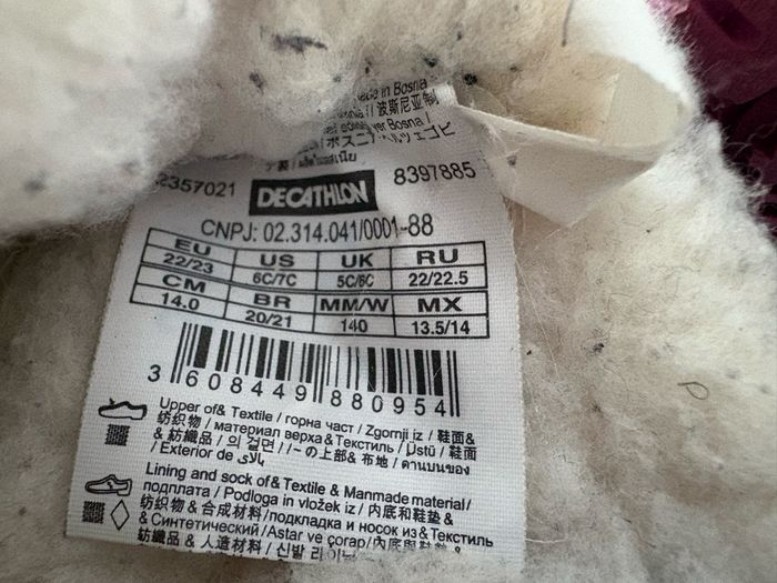 Après ski décathlon fille taille 22/23, en excellent état car achetés neufs et utilisés qu’une fois