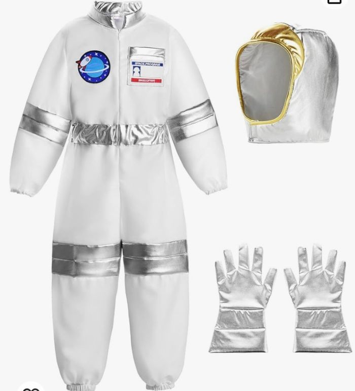 Déguisement astronaute et ces accessoires (gant, cagoule). 1 taille disponible : - 4-5ans : longueur de la combinaison 85cm, Vendu dans leur pochette d’origine, idéal pour faire un cadeau ! Expédition rapide après votre commande.