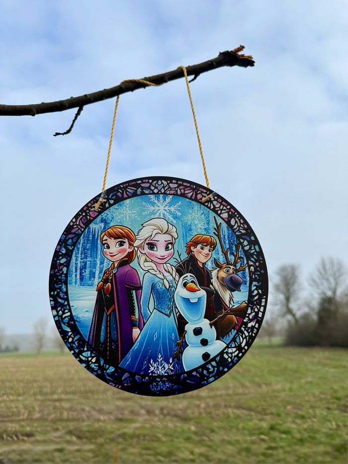 ❄️ Attrape soleil Reine des Neiges – Frozen Magnifique attrape-soleil neuf, idéal pour apporter une touche féerique et colorée à votre intérieur ✨ 🌈 À suspendre près d’une fenêtre : capte la lumière naturelle et crée de superbes reflets 👧 Parfait pour une chambre d’enfant, un coin déco ou pour les fans de Frozen 🎁 Belle idée cadeau Détails : • État : Neuf • Diamètre : 19,5 cm • Motif : Elsa, Anna, Olaf & Sven • Corde incluse pour suspension 📦 Envoi soigné et rapide 💬 N’hésitez pas si vous avez des questions !