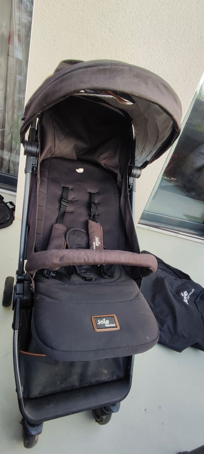 Je vends cette poussette Pact Flex Signature de la marque Joie, adaptée de la naissance à 36 mois environ (15kg). Fonctionnalités : pliage compact facile à une main, roues pivotantes, dossier inclinable, utilisable dès la naissance avec sa position allongée, repose-jambes réglable, Dimensions : ouverte p 86 x l 52,5 x h 106 cm; pliée p 52,5 x l 26,5 x h 56,5 cm: poids 6,5kg Autres points positifs : capote traitée anti-UV UPF 50+; foyer non fumeur et sans animaux; poussette en très bon état sans déchirure ni rayures; notices d'origine jointes. Accessoires : habillage pluie, housse de transport. A récupérer sur place uniquement svp, règlement en espèces Réducteur/matelas respirant également disponible sur mon profil (14 euros)