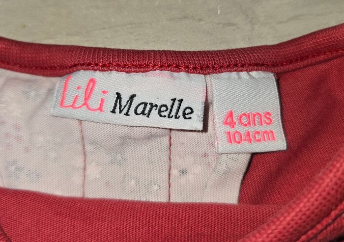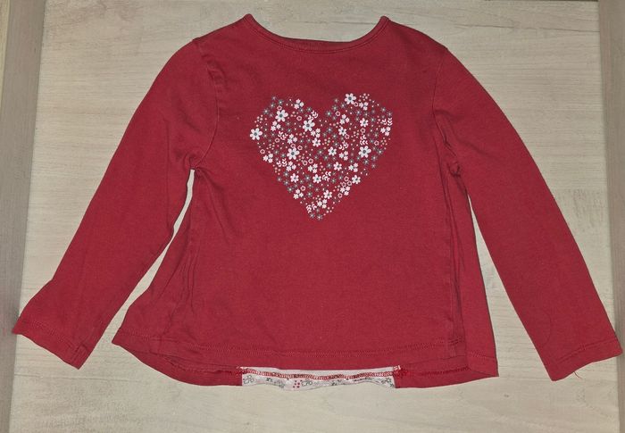 Tee shirt rouge à manches longues. Motif coeur avec "drapé" dans le dos Marque : Lili Marelle Taille : 4 ans, 104 cm Très bon état
