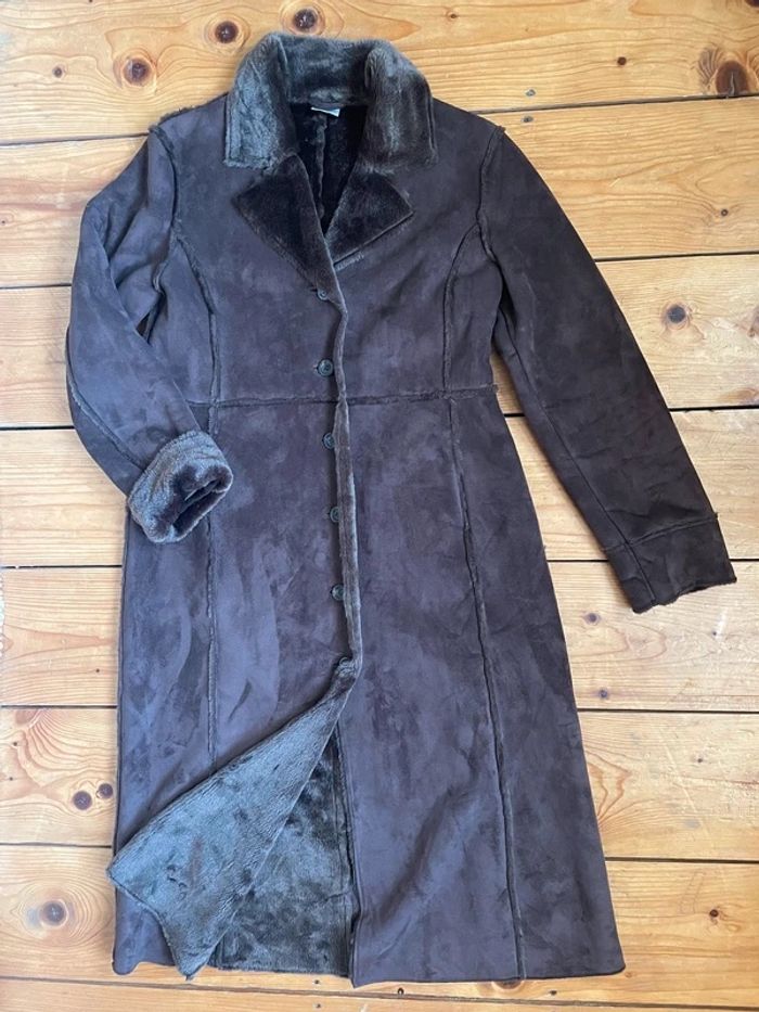 Long manteau en fausse fourrure 3 Suisses Très belle qualité : intérieur entièrement fausse fourrure très douce et extérieur "peau de pêche". Coupe intemporelle. À porter manches retournées ou pas Couleur marron châtaigne, teinte vibrante Très rarement porté, comme neuf ! Deux poches plaquées Largeur de couture d'épaule à couture d'épaule : 46 cm Longueur : 125 cm Taille estimée : 42-44 (vérifiez la largeur d'épaules avec votre manteau) ✨JUSQU’À -20% SUR LES LOTS, calculés automatiquement à partir de 2 articles ✨