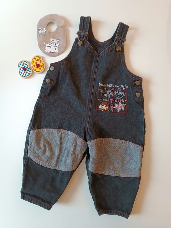Salopette Vintage Jean noir Bébé Taz de Mario Taille 23 mois