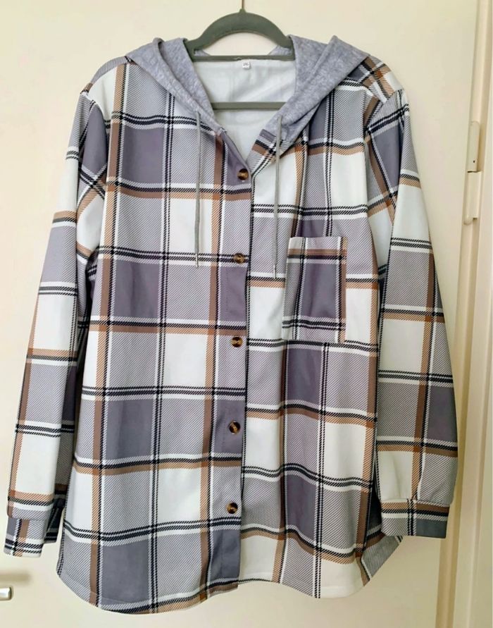 Chemise veste à carreaux marron beige capuche molleton taille 2XL femme neuve - photo numéro 1