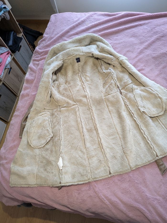 Manteau Promod fausse fourrure très chaud taille 40 comme neuf capuche ceinture beige et marron - photo numéro 8