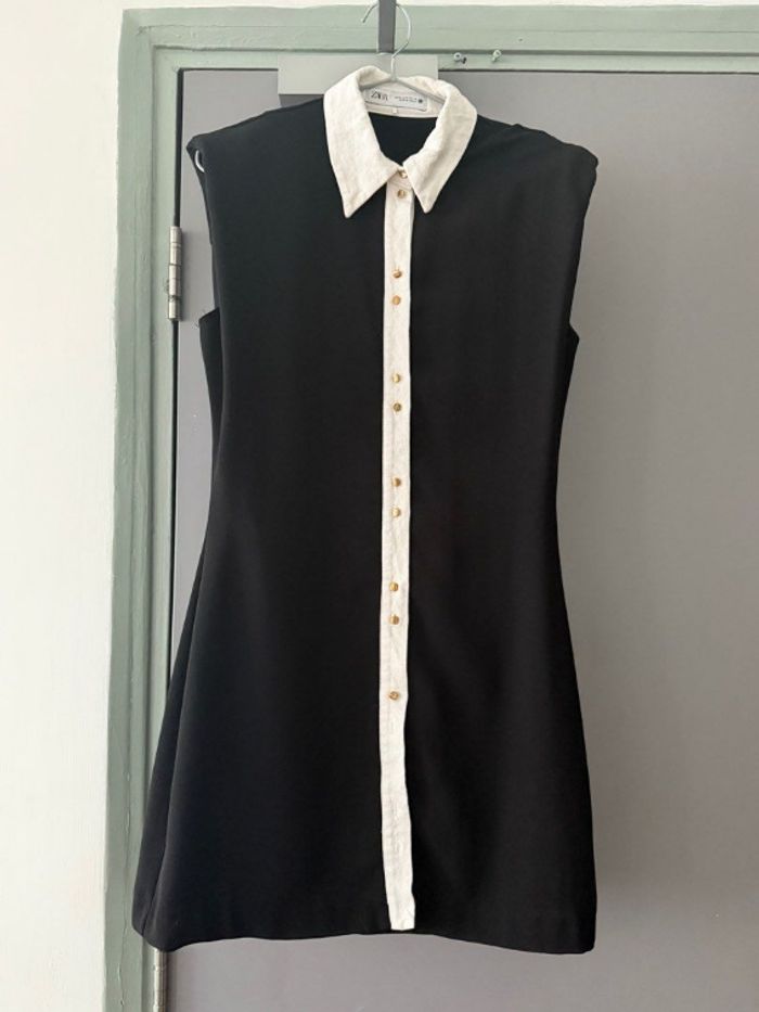Robe sans manches Zara avec un col blanc et boutons dorés. Taille S.
