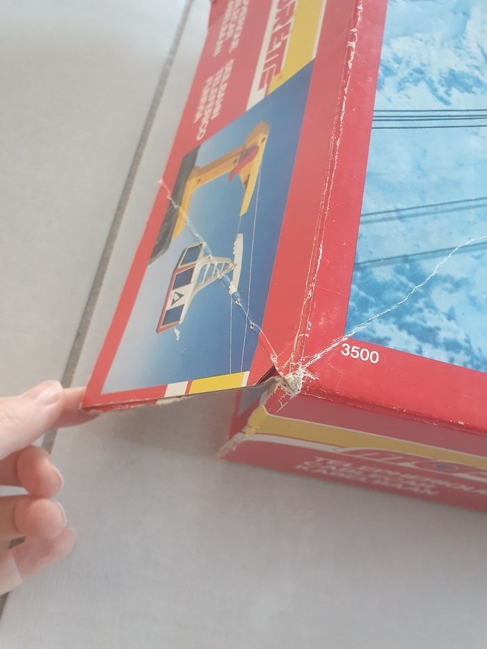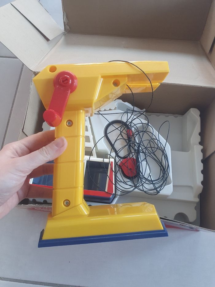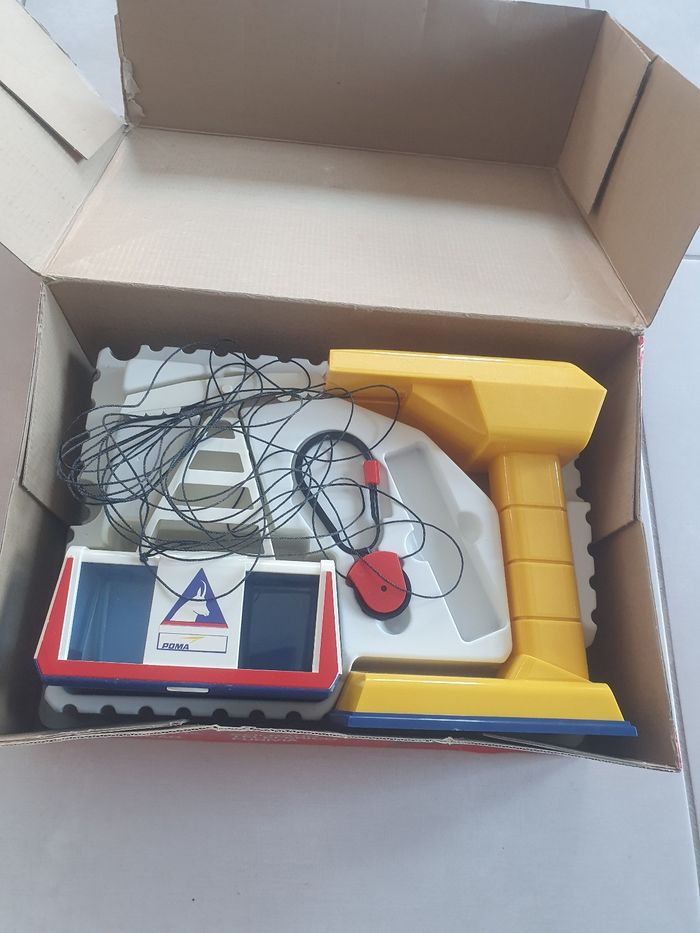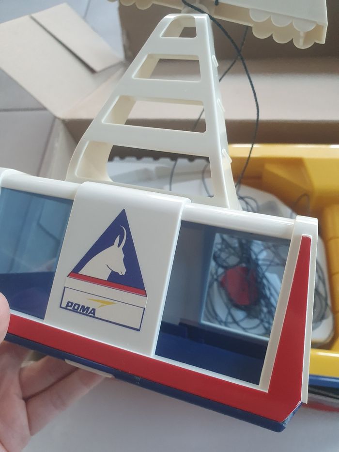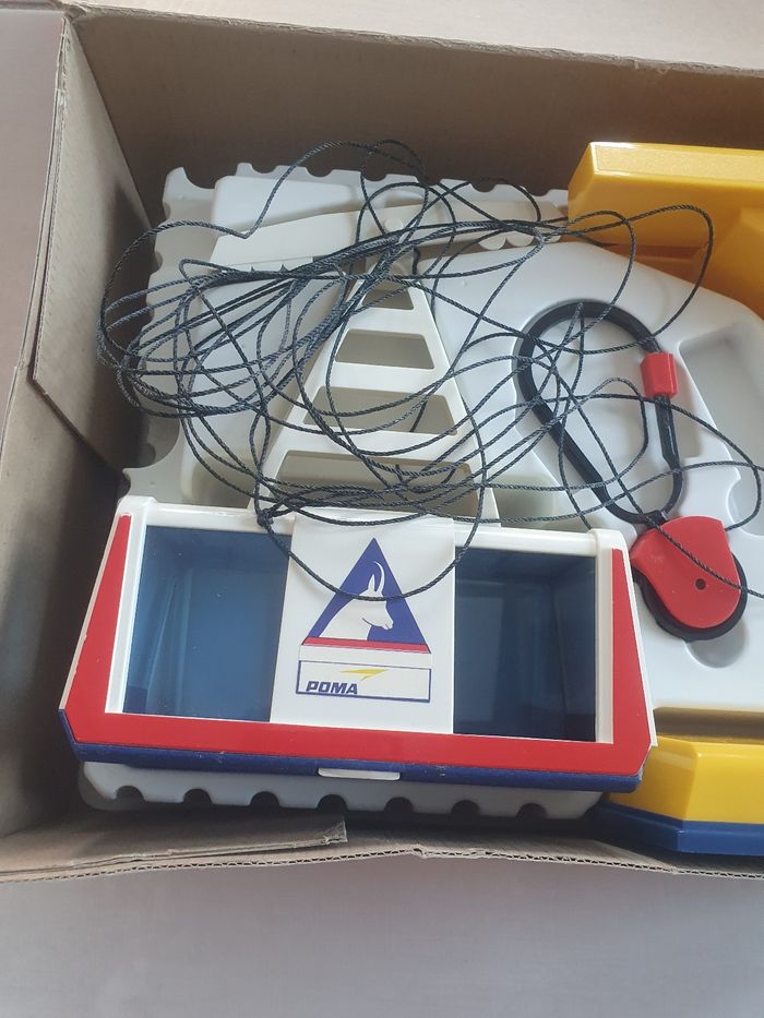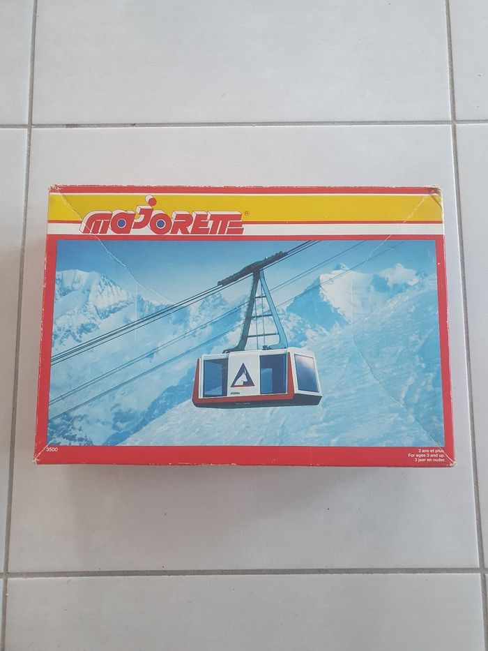 Téléphérique majorette en boîte et cale. Jeu vintage. La boîte présente des traces d'usures. Cale présente. IL MANQUE 2 VITRES BLEUES sur le téléphérique (une de chaque côté). Le fil n'est sans doute pas d'origine. Il y a un vide sur la cale, est ce que c'était pour y ranger le fil? En tout cas si quelque chose est manquant, cela n'empêche pas le jouet de fonctionner. Plus de photos ou de renseignements sur demande.