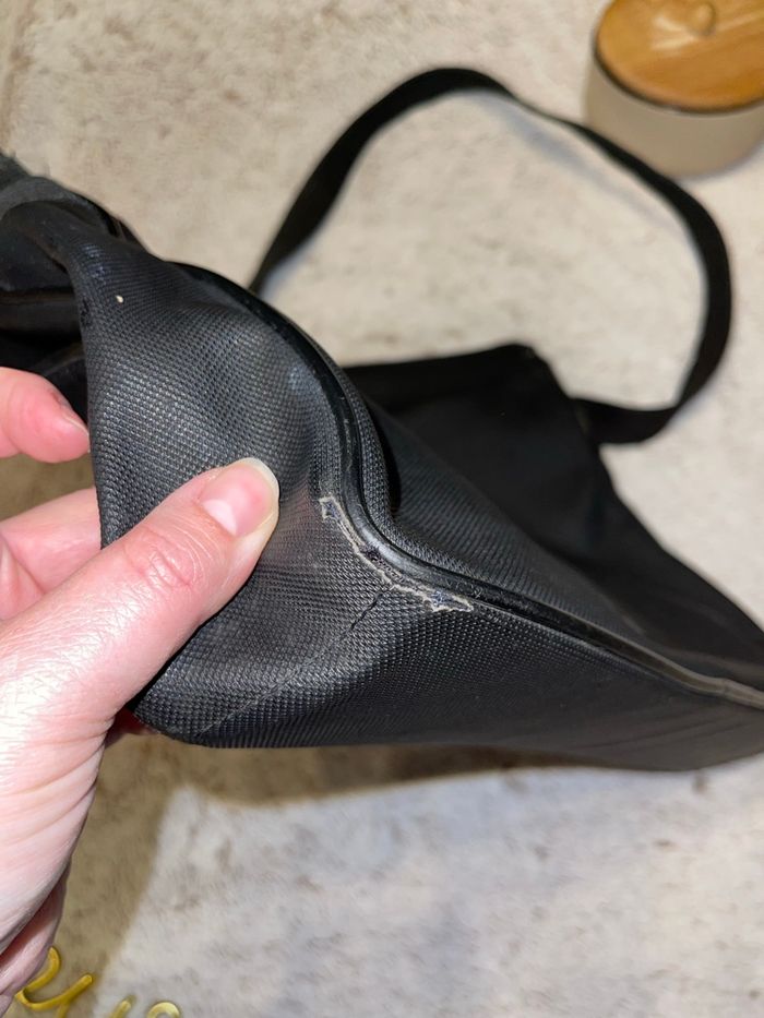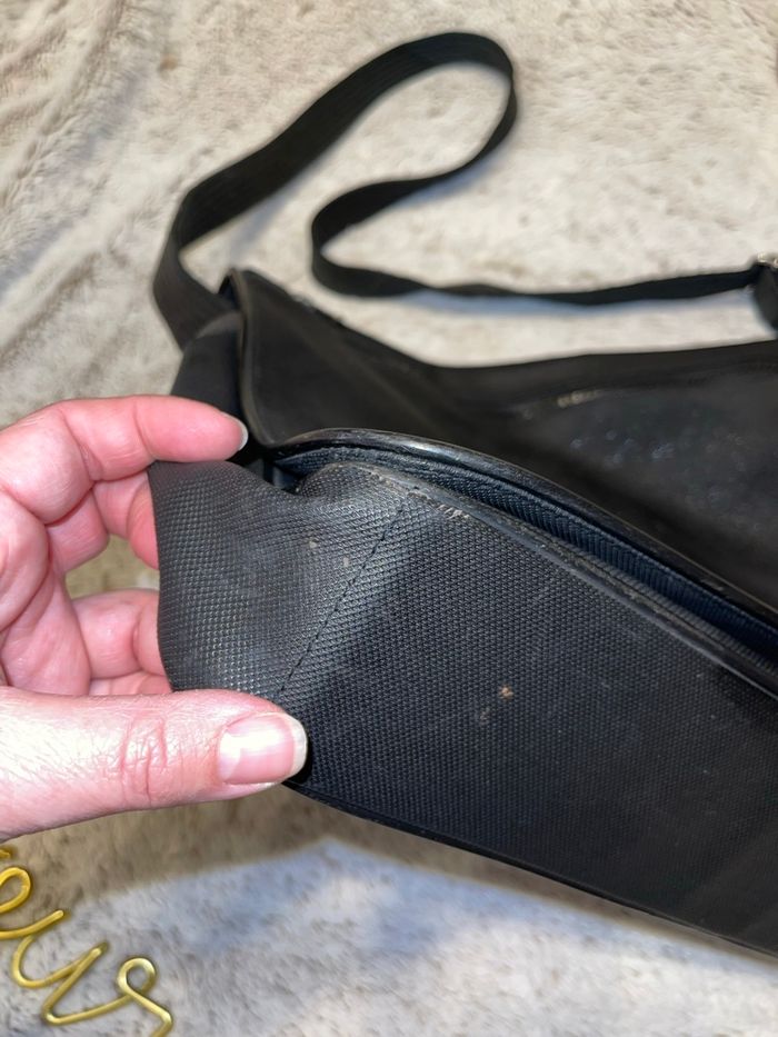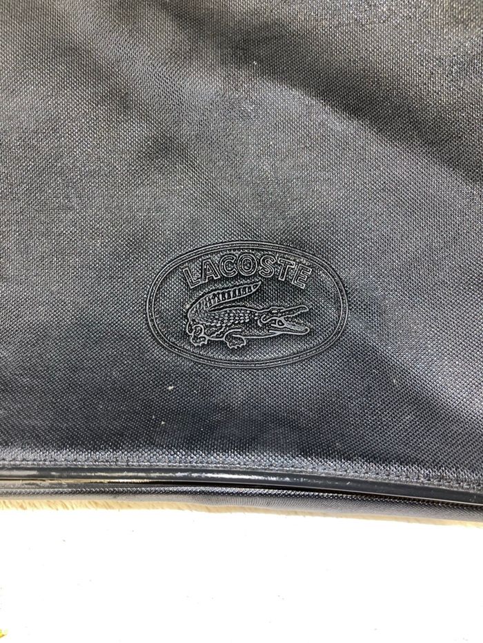 Sac à porter à l’épaule avec bandoulière réglable Modèle messenger noir Quelque endroit abîmer car elle a été porter (fortement avec les vêtements ) mais ne gêne en rien en son utilisation. Dimensions : largeur env. 28 cm, hauteur env. 21 cm, profondeur env. 9 cm Acheter 140€ Lacoste