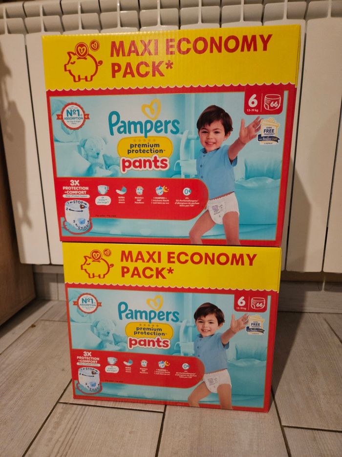 Bonjour Je mets en vente ce lot de cartons neufs de pampers prenium protection pants taille 6 132 couches au total Envoie rapide en semaine