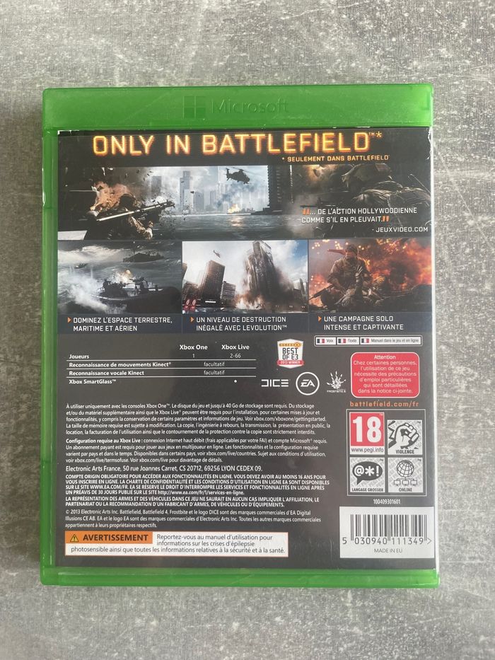 Jeu pour Microsoft xbox one, Battlefield 4 en français.