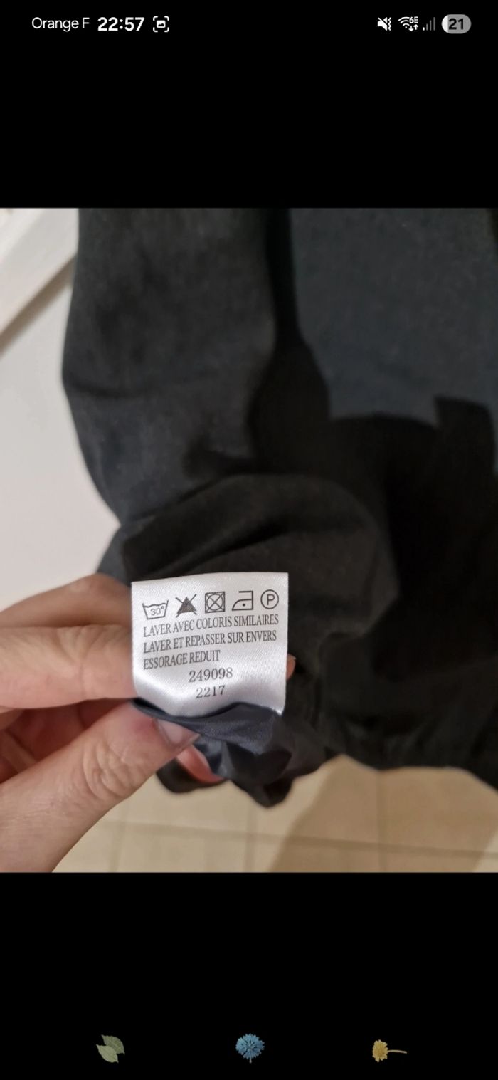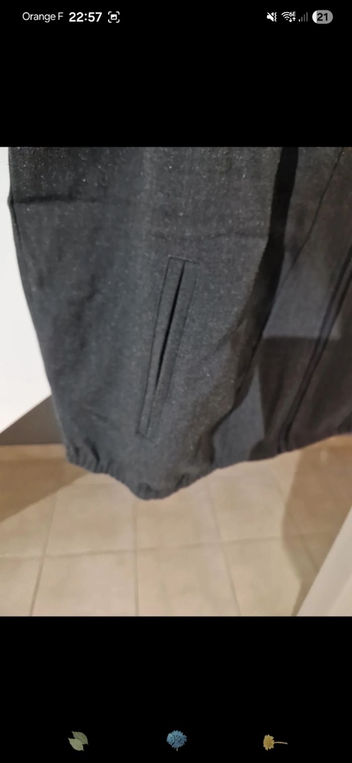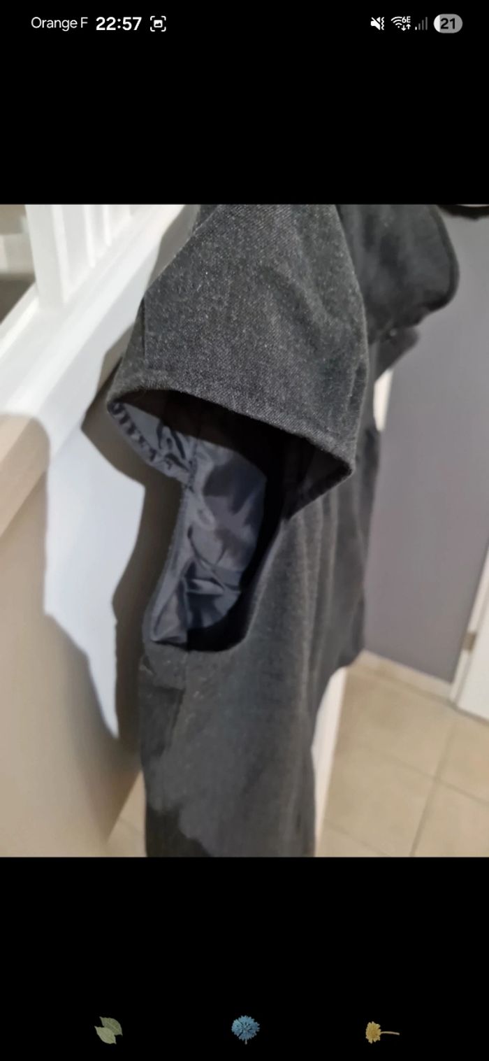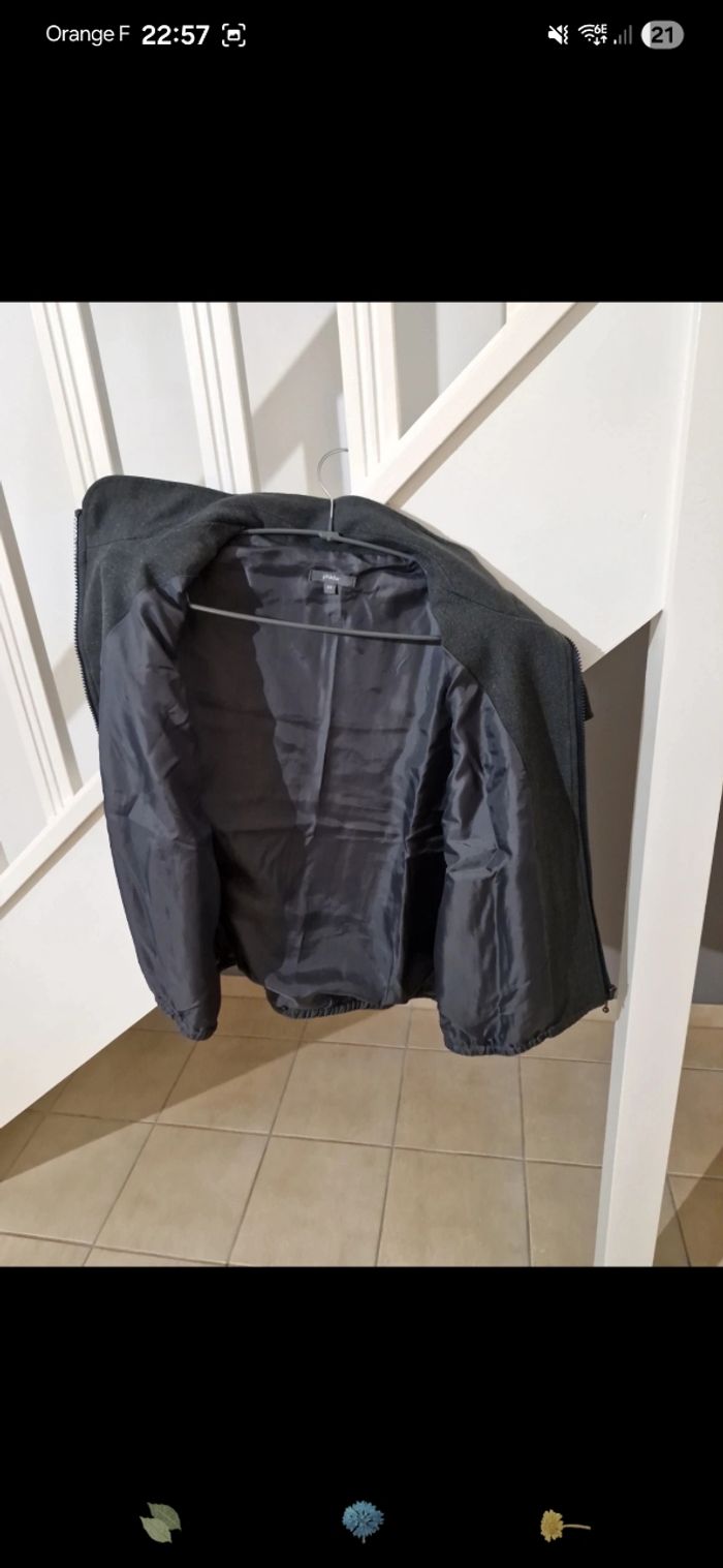 Veste Phildar gris, 44, manche courte, fermeture éclair, fausse poche, légèrement élastique en bas, doublure. 41 cm épaule à épaule 55 cm de longueur