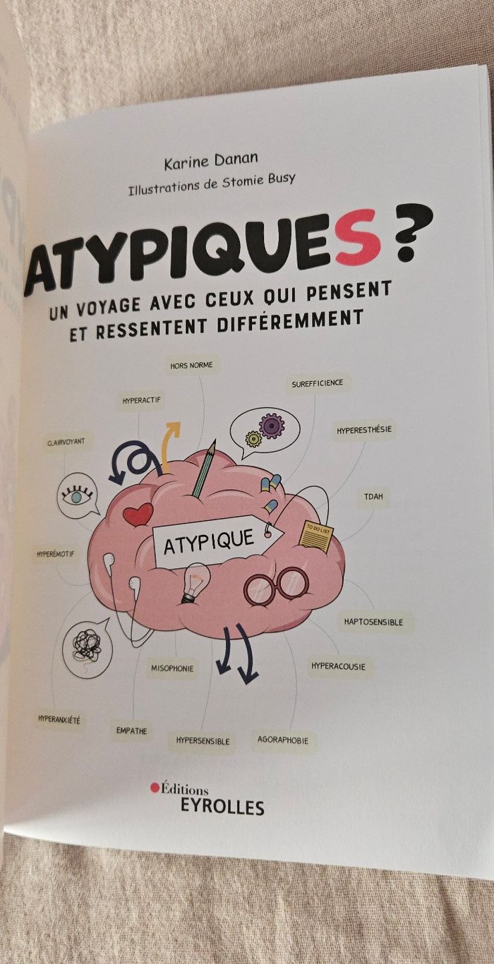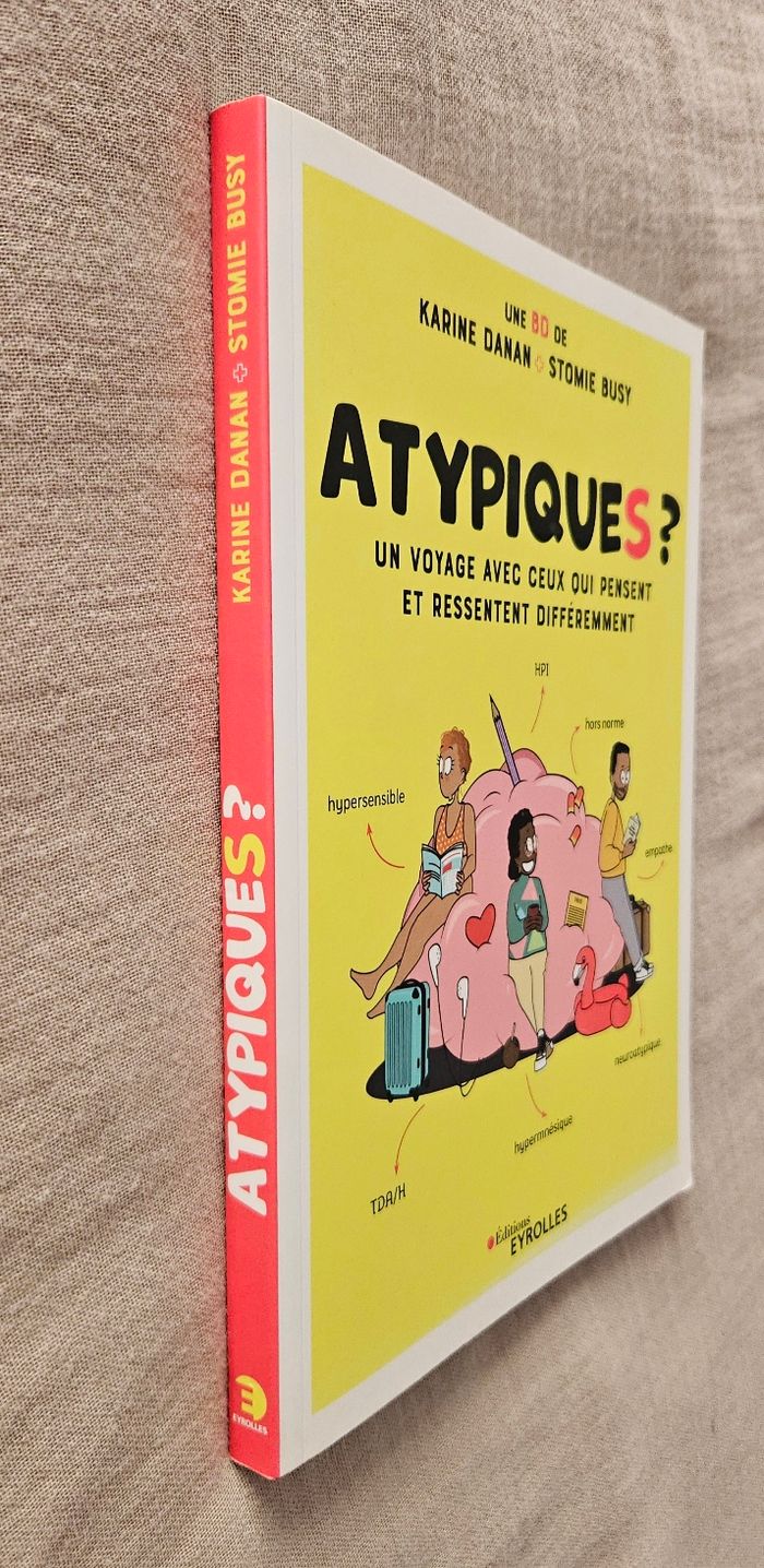 Livre "Atypiques ? Un voyage avec ceux qui pensent et ressentent différemment", publié aux Éditions Eyrolles. Auteur : Karine Danan Illustration : Stomie Busy Un ouvrage inspirant qui explore la manière dont certaines personnes vivent, réfléchissent et ressentent le monde de façon différente - parfait pour tous ceux qui se sentent atypiques ou veulent mieux comprendre les profils non conformistes. 132 pages - BD + 3 tests (Êtes-vous hypersensible ? TDAH ? HPI ?) 📦 Envoi rapide et soigné • Mondial relay : ~24h • Chronopost et autres : 2-3 jours 📩 N'hésitez pas à me contacter pour toute question