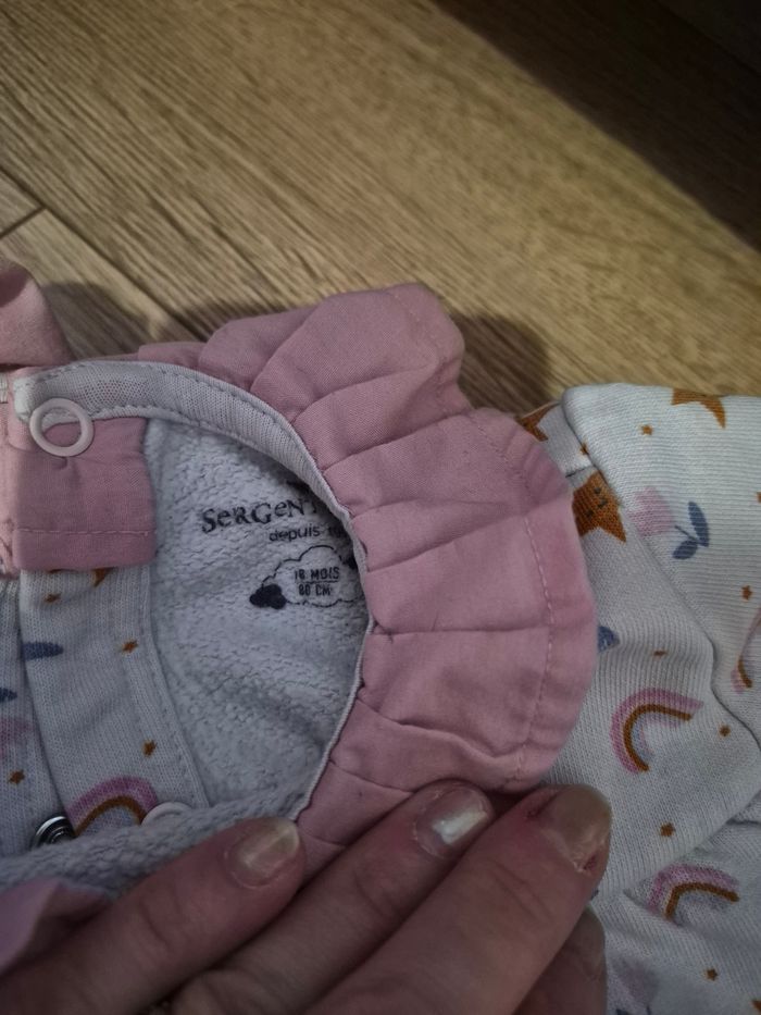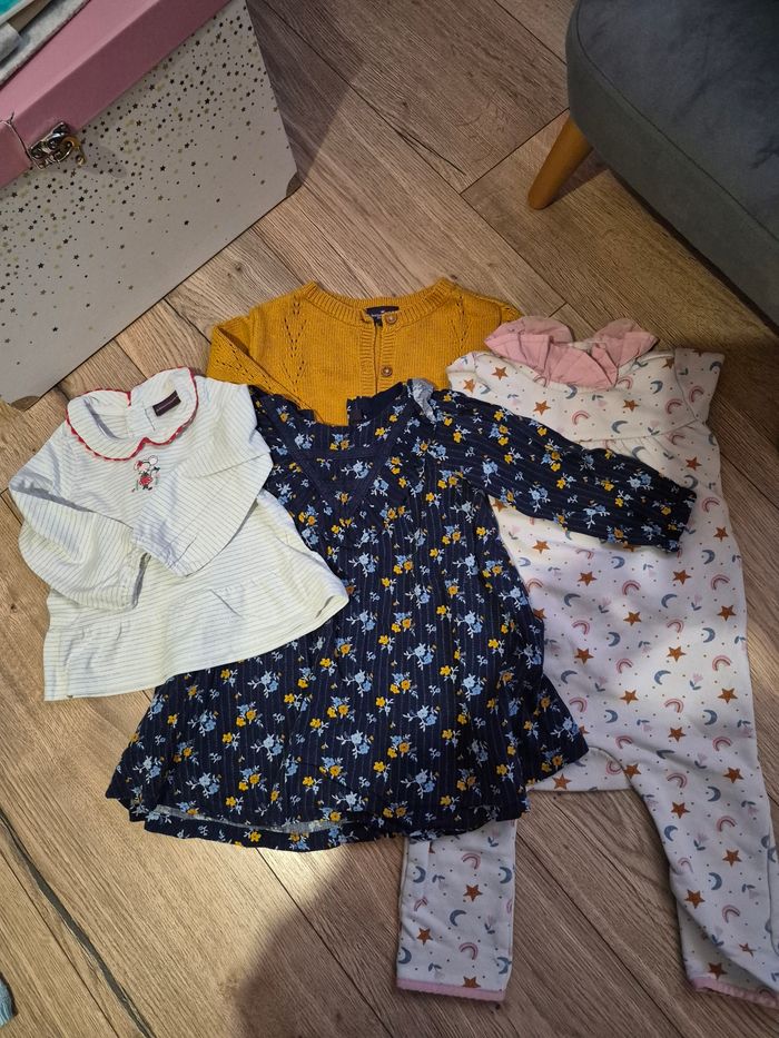 Très bon état 18 mois 1 pyjama ouverture par le dis. 1 robe bleu avec gilet assortie. 1 haut