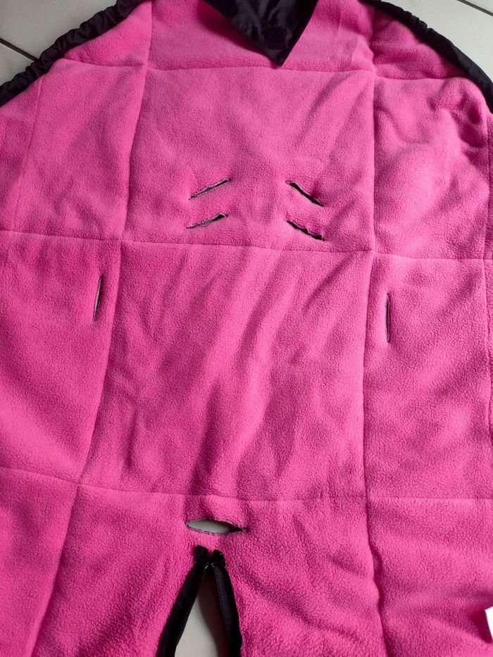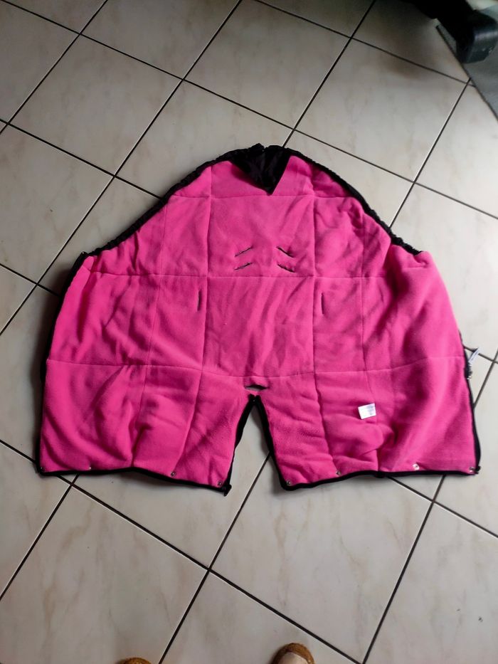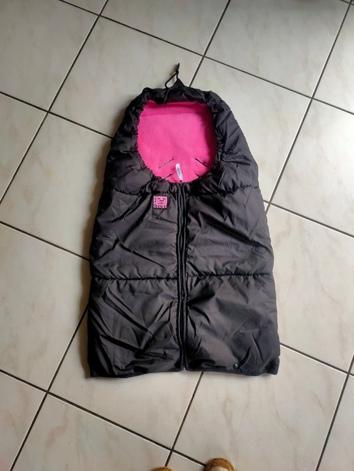 La chancelière COMBIZIP de RED CASTLE s'utilise dès la naissance et jusqu'à 6 mois (taille 1). Imperméable a l'extérieur coloris noir et intérieur polaire coloris fuchsia. Il y a de la ouate entre le polaire et le tissu imperméable, la chancelière est donc chaude. Le nid d'ange, pour une utilisation en landau ou en siège auto (avec fentes pour le passage des sangles de sécurité), il se transforme en nid à jambes par un simple jeu de fermetures éclair et de boutons à pression. Ainsi modifié, il est idéal dans un porte-bébé, un siège de vélo ou encore dans une poussette. Sa partie arrondie se fronce pour former une capuche. La chancelière est en excellent état, a servi a un bébé. Elle a été acheté neuve. Prix ferme, PAS DE NÉGO !!! Acheté 80€