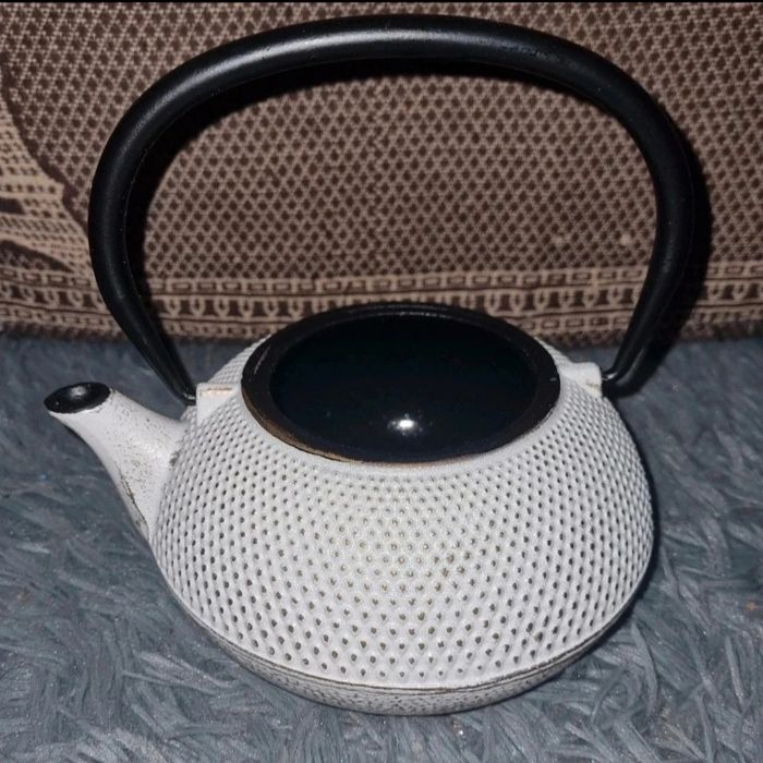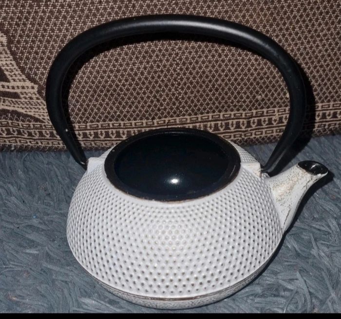Théière en  fonte blanc ,doré et noire style vintage - photo numéro 1