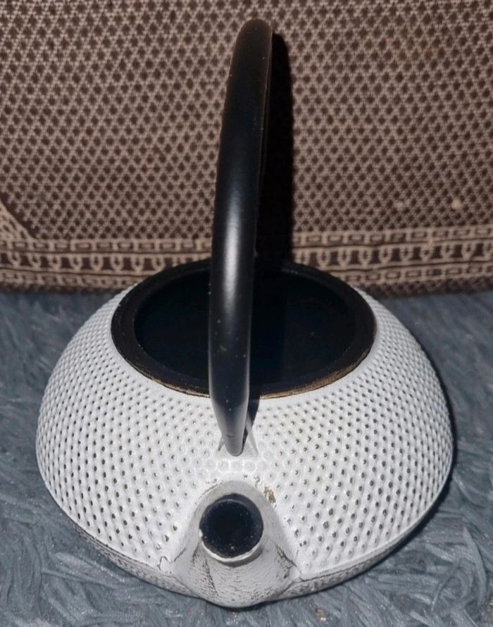 Théière en  fonte blanc ,doré et noire style vintage - photo numéro 8