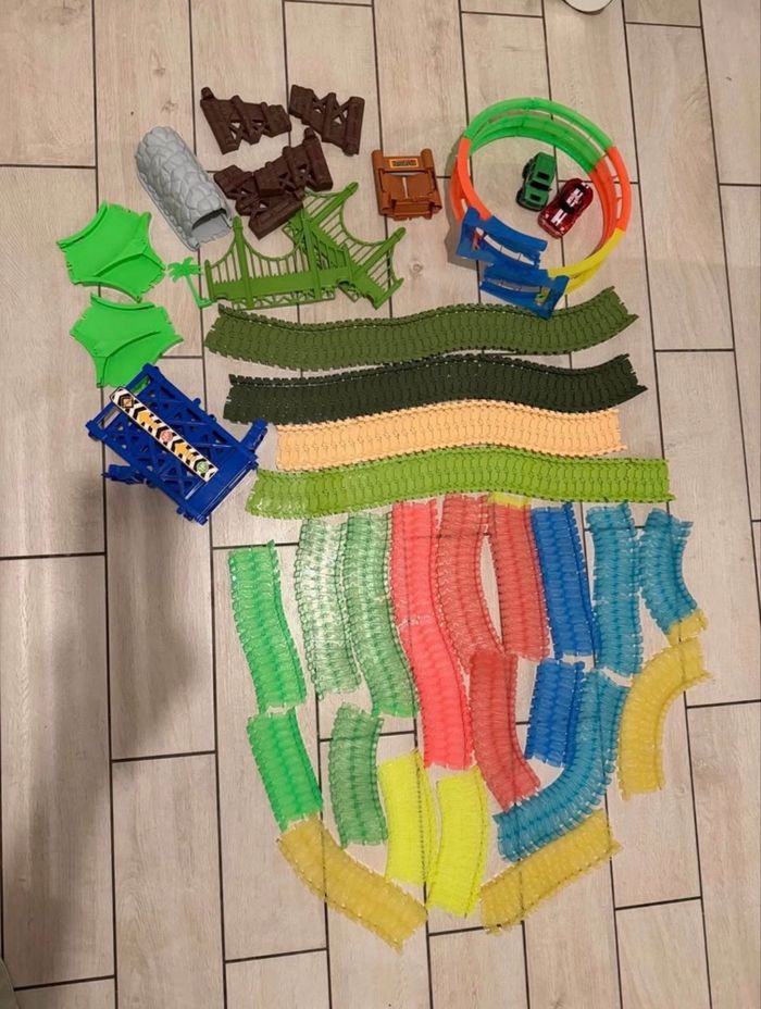 🏎️ Grand circuit modulable pour voitures – Nombreuses pièces + véhicules Vends grand circuit de voitures modulable avec beaucoup de rails et accessoires, idéal pour enfants 👶👦 📦 Contenu : • Très nombreux rails flexibles et rigides (plusieurs couleurs) • Pont / passerelle • Tunnel • Éléments décor • 2 voitures incluses 🧩 Avantages : • Circuit entièrement modulable → créations infinies • jeux type Magic Tracks / circuits lumineux • Favorise l’imagination et la motricité • Facile à monter et démonter 📌 État : Bon état général, traces normales d’utilisation 🎁 Parfait comme cadeau ou pour compléter un circuit existant 📦 Envoi rapide ou remise en main propre possible 📸 Photos supplémentaires sur demande