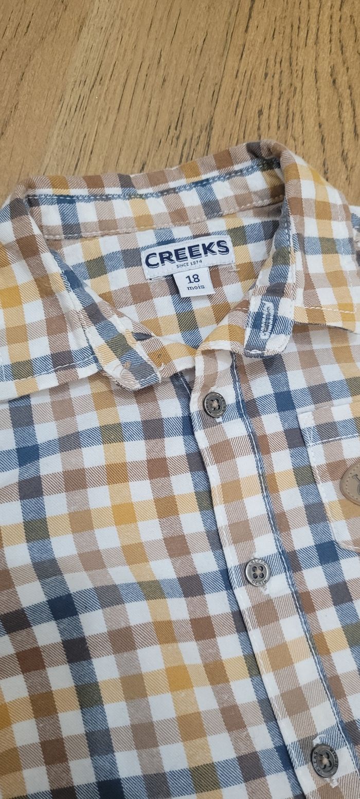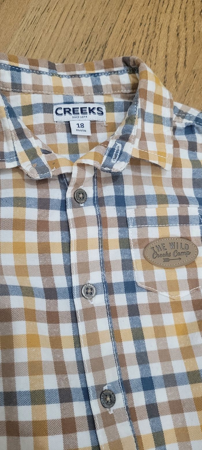 chemise à carreaux et pantalon bleu creeks, très bon état, 18 mois