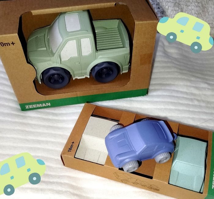 🧸 Zeeman Jouets certifiés FSC... Neufs dans emballage d'origine 3 Petites voitures et 1 gros camion