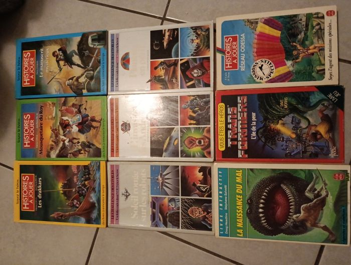 Lot 9 Livres Dont Vous Êtes Le Héros LDVELH. Histoire ms à jouer, réseau Odessa Vous êtes le héros, Trans Formers, l'île de la peur Livre interactif la naissance du mal Le challenge des étoiles, un folio cadet dont vous êtes le héros : planètes en péril, l'invasion des androïdes, Soleil rouge sur les robots Soyez le héros, histoires à jouer, des livres à remonter le temps : le manuscrit mystérieux, mousquetaires du roy, les drakkars Bon état dans l'ensemble