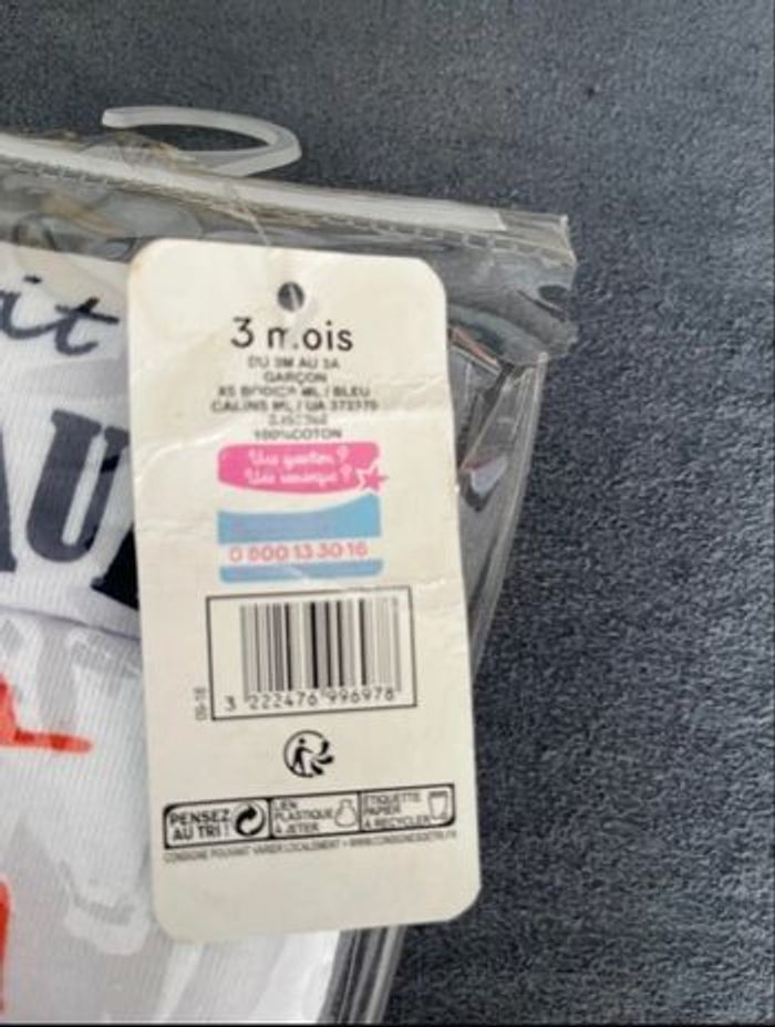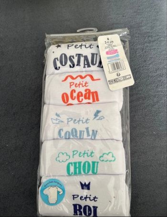 Lot de cinq bodies Taille 3 mois 100 % coton Neufs Envoi rapide