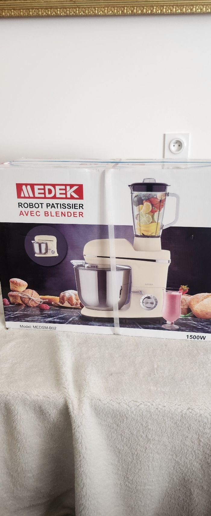 Vendeur pro Robot pâtissier puissant MEDEK avec blender inclus, idéal pour la pâtisserie et la cuisine du quotidien. ✨ Caractéristiques : Puissance : 1500 W Robot pâtissier + blender multifonction Grand bol en inox Parfait pour pâtes, gâteaux, pains, crèmes, smoothies, jus… Design élégant et moderne Commande simple avec molette de réglage Envoi rapide et soigné Facture à votre nom sur demande. N’hésitez pas à visiter mon profil pour un achat groupé ou demander plus de photos.
