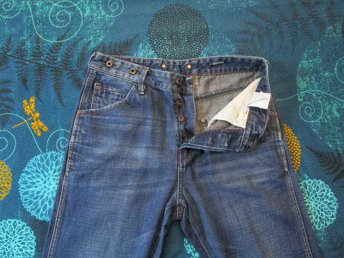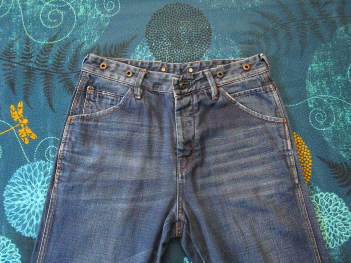 👖Modèle Brewer de chez Scotch and Soda, Taille 40 (30US) Coupe régular tapered Ce Jean possède un style intemporel. Avec une coupe décontractée au niveau des hanches et des cuisses qui s'affine progressivement jusqu'aux chevilles, ce jean offre une silhouette flatteuse, idéale pour toutes les occasions décontractées. Agréable à porter malgré son tissu épais. ✨ État / Observation : En très bon état, il a été lavé quelques points d'usures normaux pour du second main (voir photos) 🔹 Marque : Scotch and Soda 🔹 Couleur : bleu 🔹 Coupe : tapered 🔹 Matière : 100% coton 🔹 Braguette : boutonnée 🔹 Taille : W30 L34 📏Mesures (voir photo)📏: (A) Mesure ceinture taille : 40,5 cm (B) Mesure hauteur : 106 cm (C) Mesure longueur jambe : 76 cm (D) Mesure cuisse : 26,5 cm (E) Mesure largeur bas : 16 cm (F) Mesure entre-jambe : 35 cm ℹ️ Vous avez une question ? Besoin de plus d’informations ? N’hésitez pas à m’envoyer un petit message. ⭐⭐Offre sérieuse acceptée⭐⭐