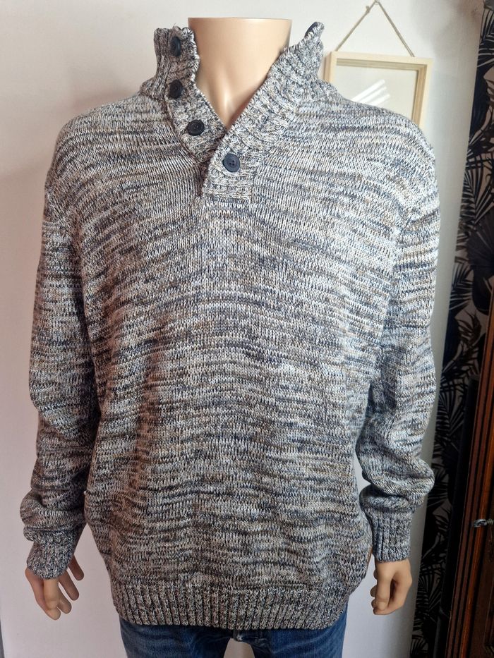 Pull col boutonné Pataugas Beige Marron Tricot Taille XL Homme Sweat - photo numéro 2