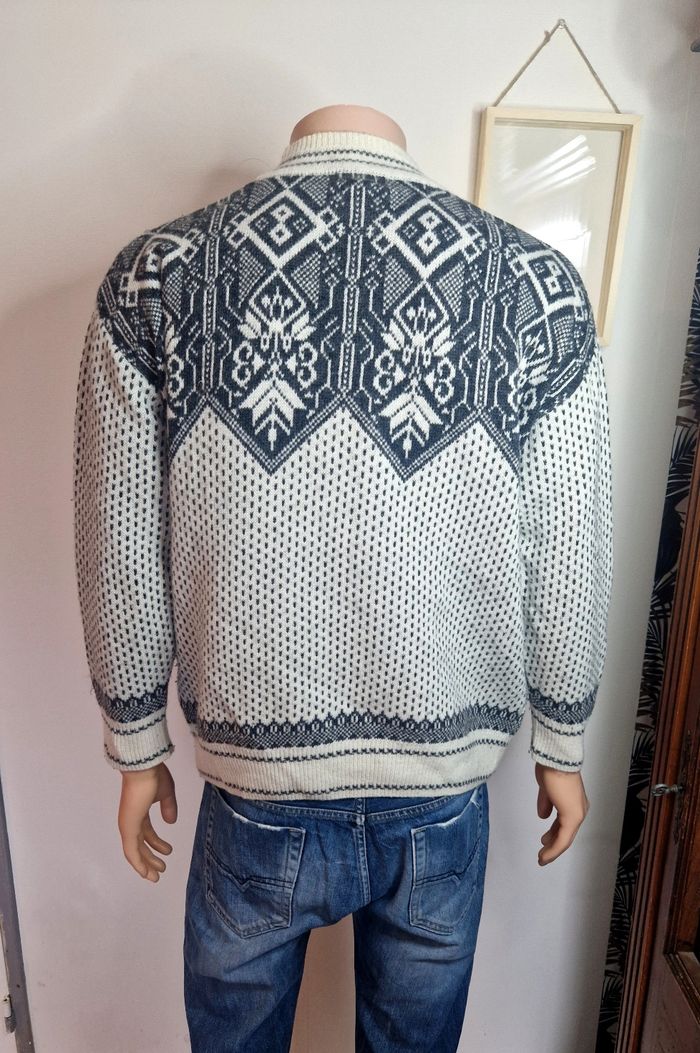 Pull en maille Phildar Crème/Gris anthracite Vintage Taille M Homme Pull - photo numéro 4