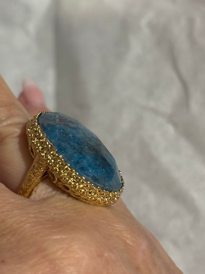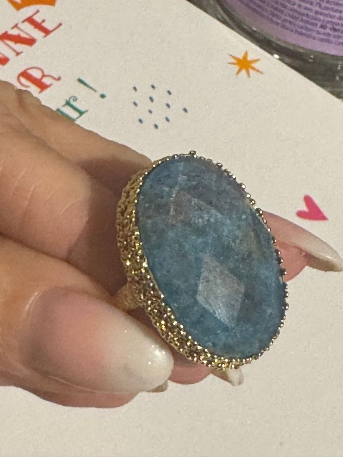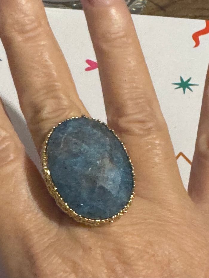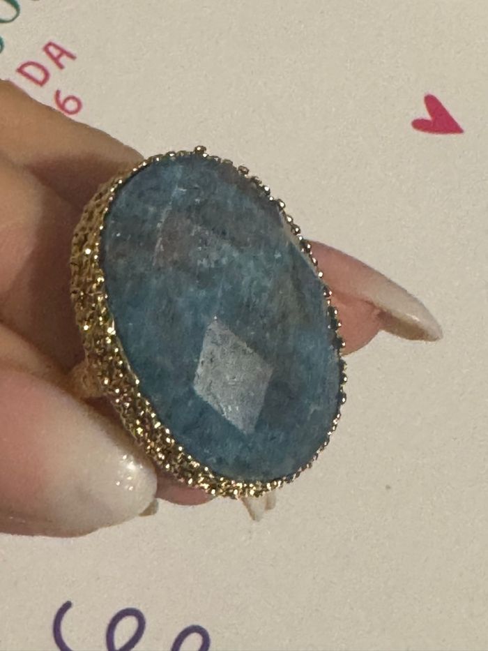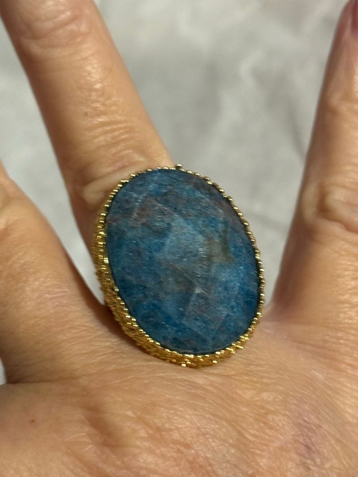 Superbe grosse bague marque habaha Paris tout en apatite et acier inoxydable or réglable neuve dans pochon