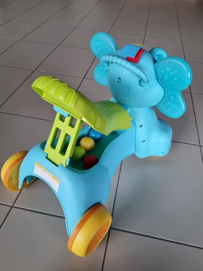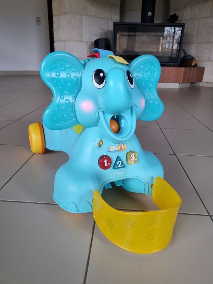 Le porteur évolutif INFANTINO Eléphant 3 en 1 stimule l'enfant à jouer et à se déplacer. Il peut être utilisé comme porteur, trotteur ou ramasseur de balles. Convient aux enfants de 6 mois à 3 ans Dimensions : 610*198*406 mm. Alimenté par piles qu il faudra changer. Effets sonores inclus. Poids : 4.27 kg. Couleur principale : Bleu. Avec balles. Vendu neuf : 56 euros Attention colis imposant ne peut pas aller dans un locker. Dépôt en point relai.