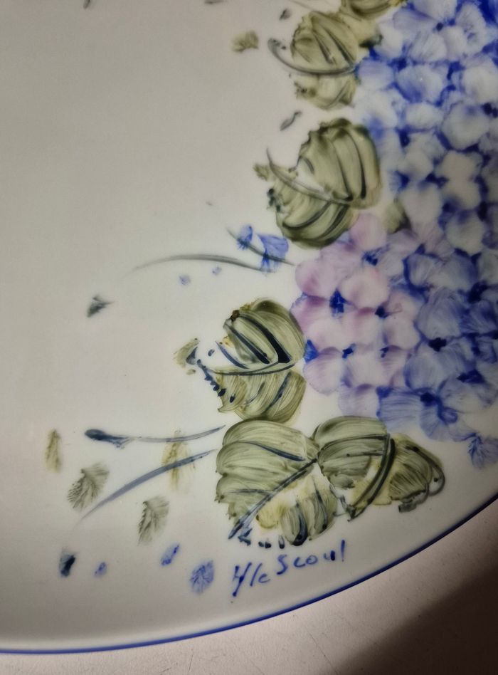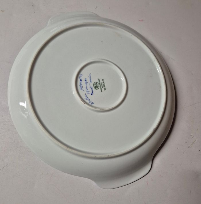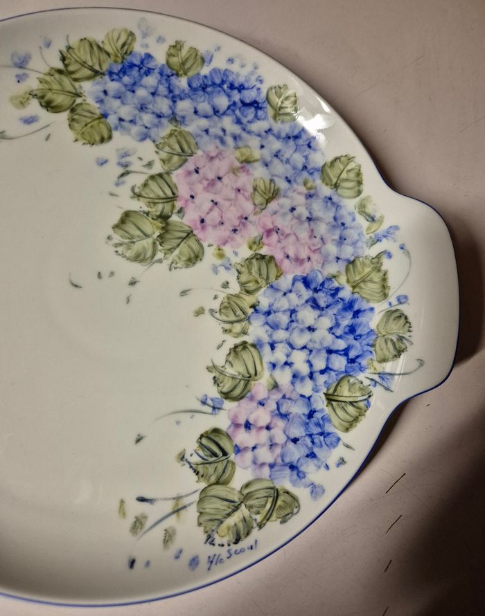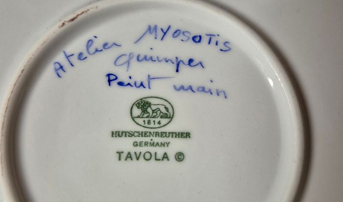 Plat a tarte en porcelaine blanche peint à la main par l'atelier myosotys a quimper HUTSCHENREUTHER germany Tavola Largeur totale: 31cm Diametee 27cm Tres bon etat #platatartevintage #platatarteancien #platatarteporcelaine #porcelaineallemande #hutschenreuther #hutschenreutherporcelain
