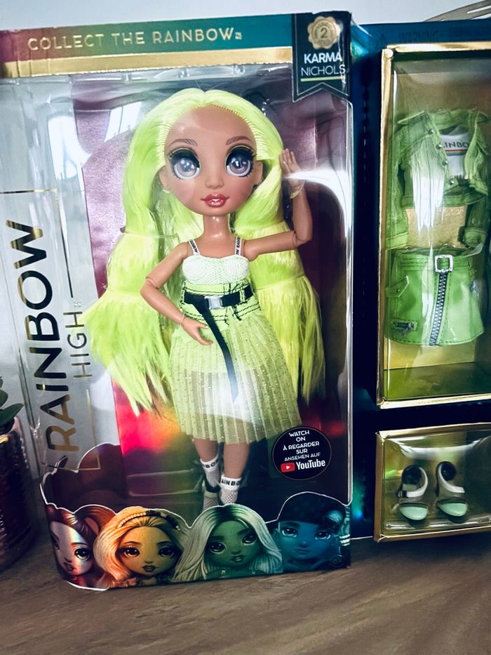 Karma Nichols. Boîte légèrement abîmée sur le côté plastifié mais ce ne se voit pas en photo. Je vends d’autres Rainbow High