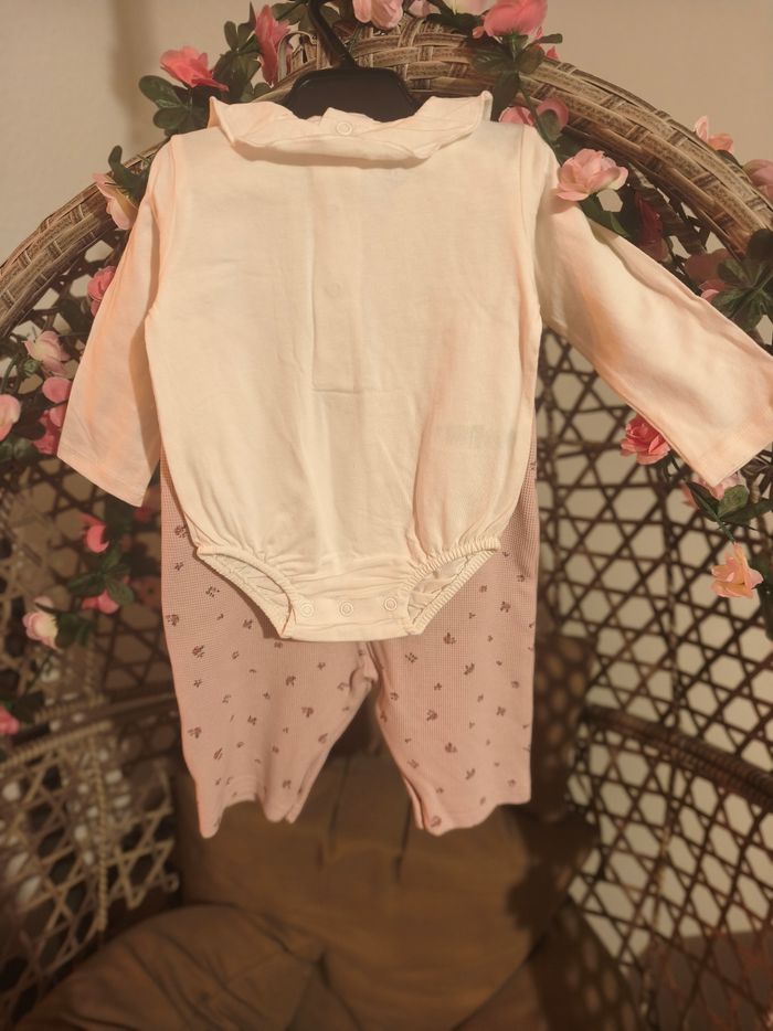 Bonjour vend ensemble salopette rose motif fleur taille 6mois