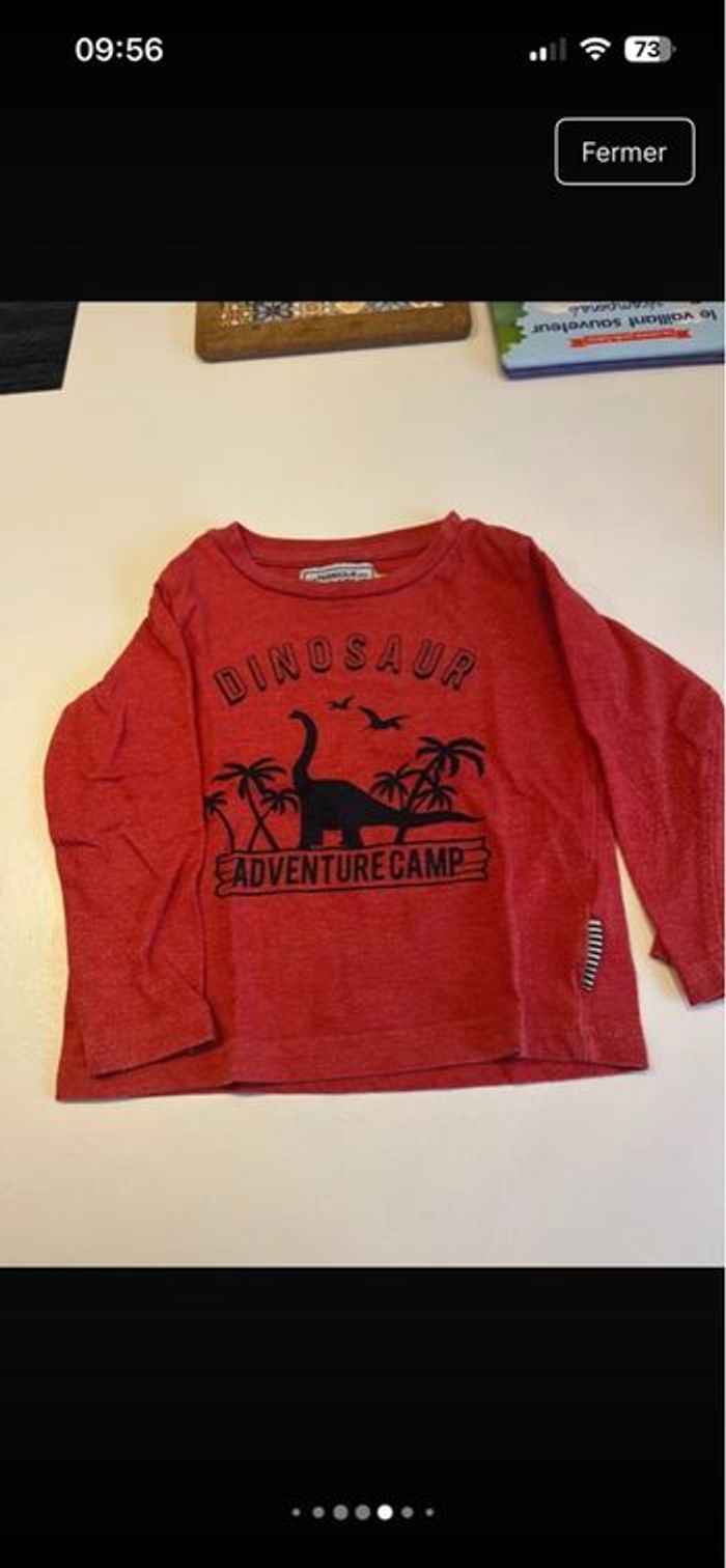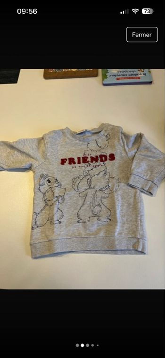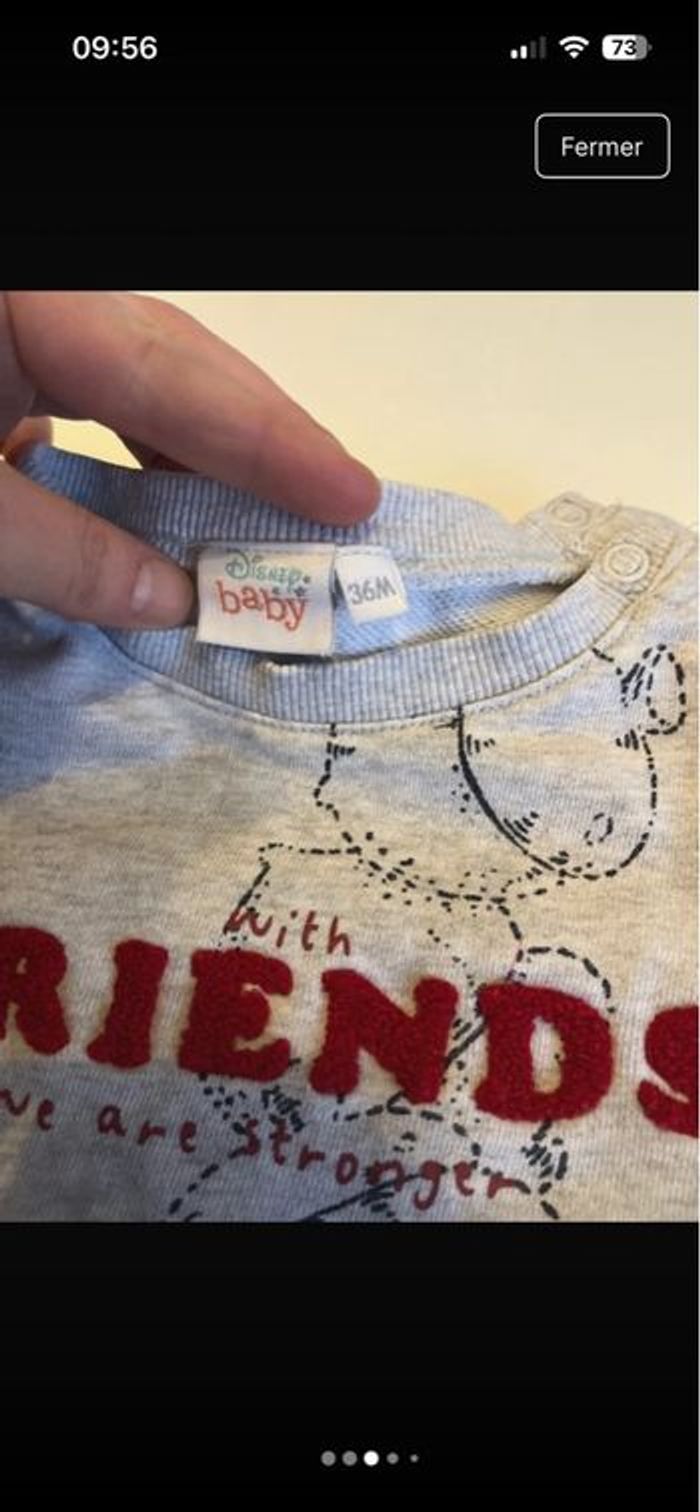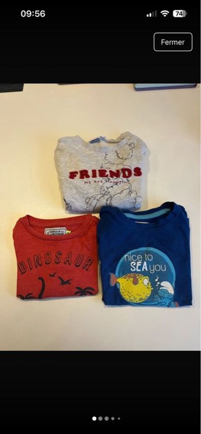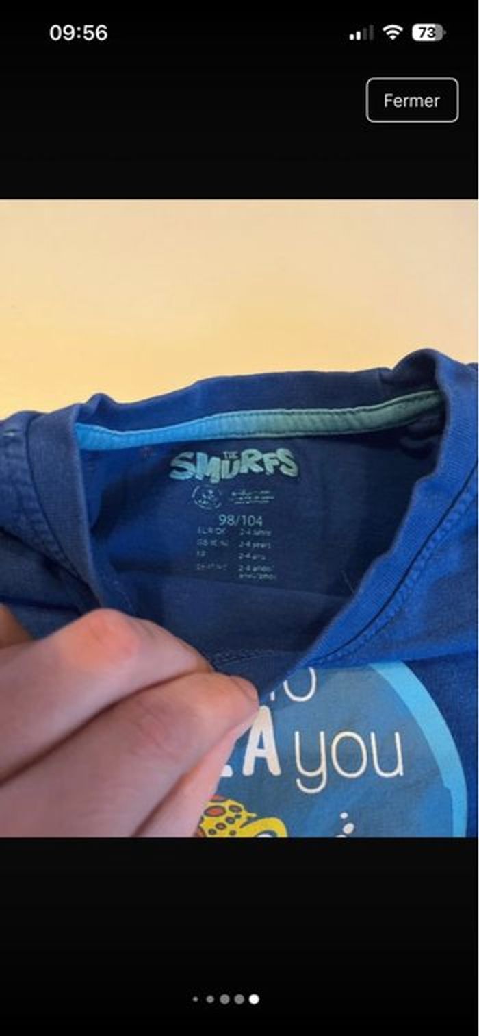 Lot garçon 3 ans comprenant Un sweat Disney 3 ans Un tee shirt manches longues (quelques bouloches) rouge La fabrique des garçons 3 ans Un tee shirt Schtroumpfs 98/104 cm Bon état général