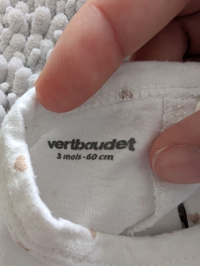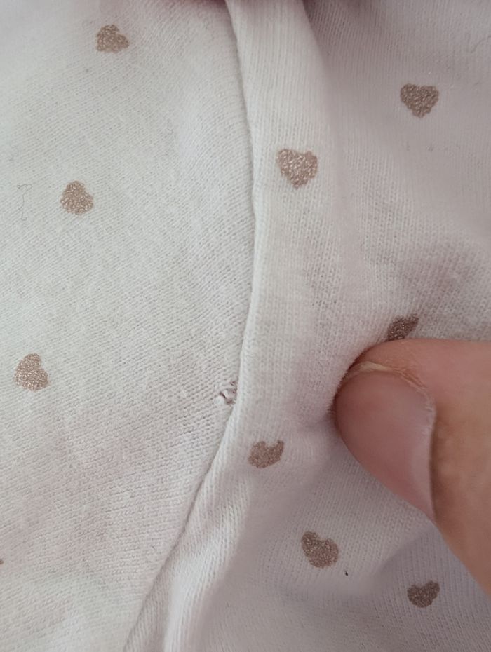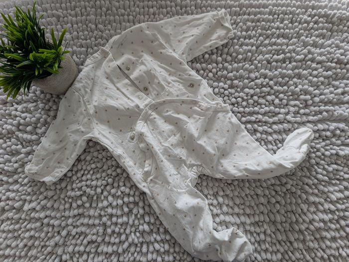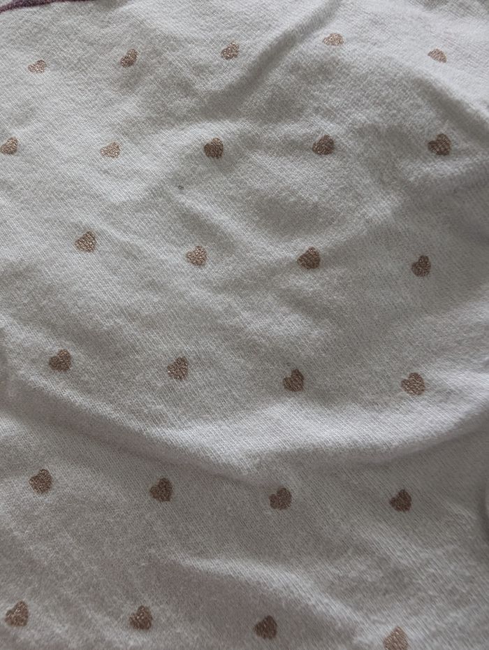 Pyjama léger avec cœur. ATTENTION il y a un petit trou au niveau de la couture du bras voir photo. Taille 3 mois