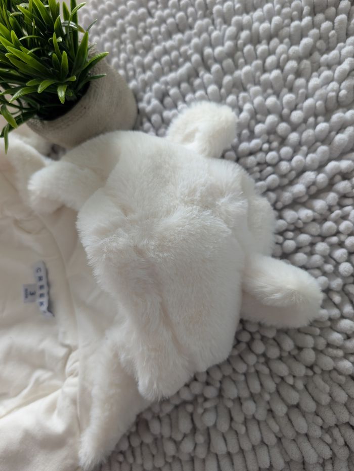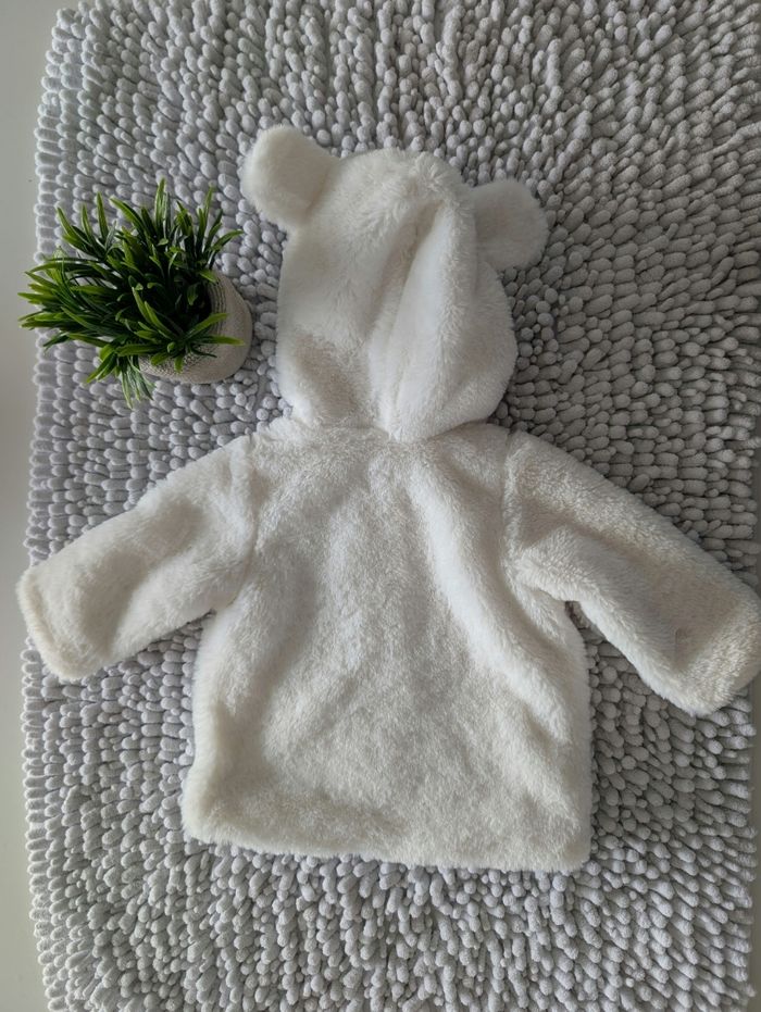 Manteau fourrure à capuche avec oreilles. Doublure à l'intérieur tout doux Taille 3 mois Couleur blanc