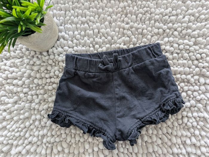 Short couleur noir mais un fané ( utiliser une lessive pour raviver le noir ), il y a des bouloches. A froufrou en bas Taille 6 mois