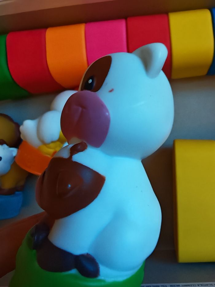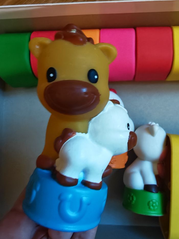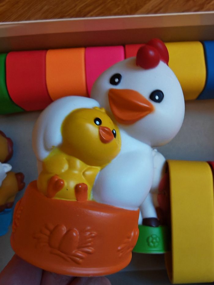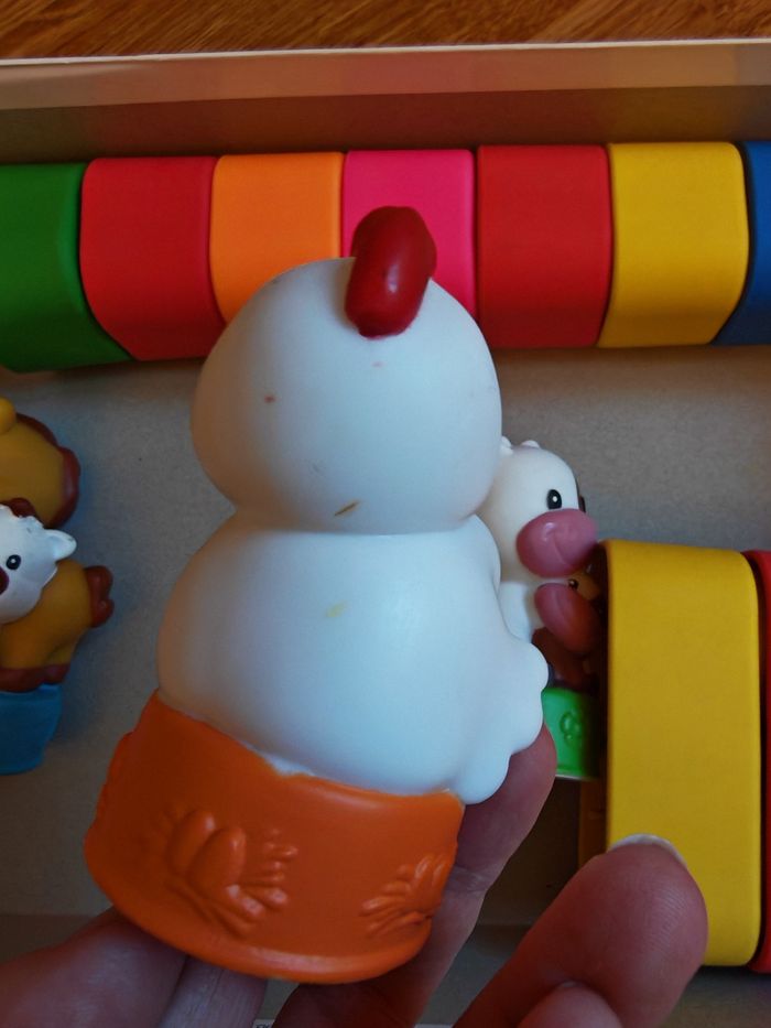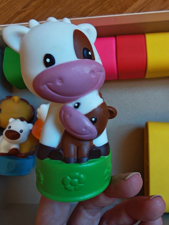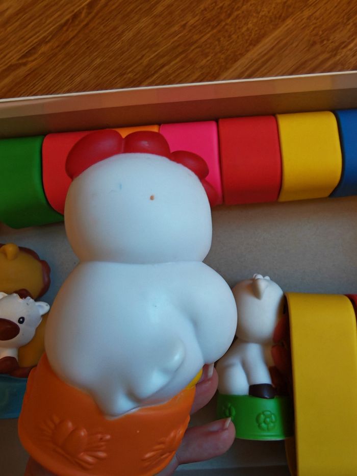 Jeux cubes souples clementoni avec personnages de la ferme. Quelques traces d'usure (cf photo) mais sinon très bon état.