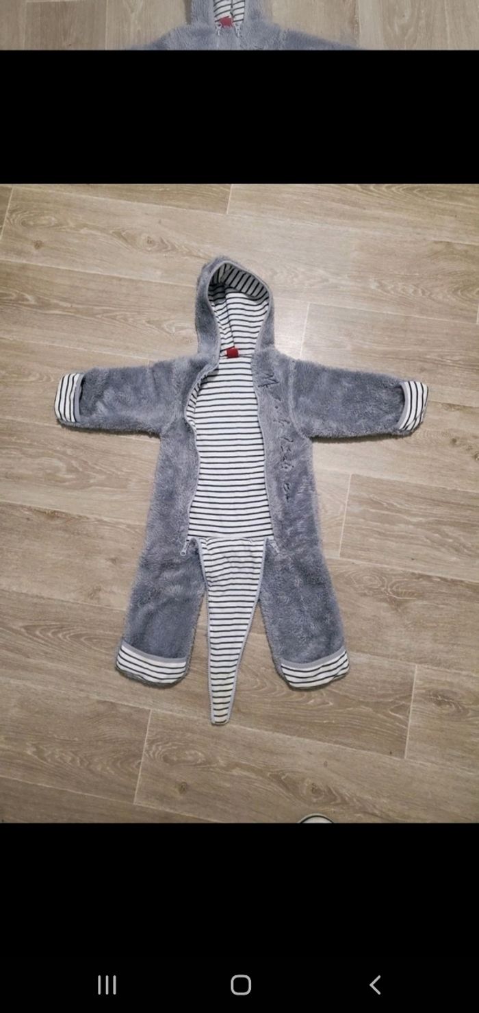 Superbe Combinaison Combipilote 9mois 71cm mixte Avec mains et pieds retroussable Idéal mi saison car pas trop épaisse A fermeture éclair Rayures Couleur Grise Très bon état