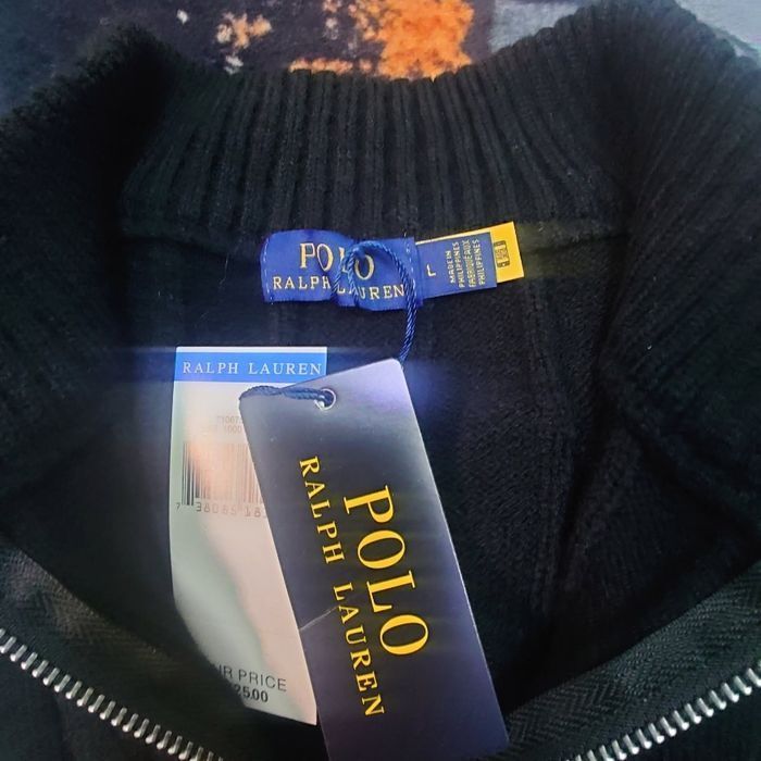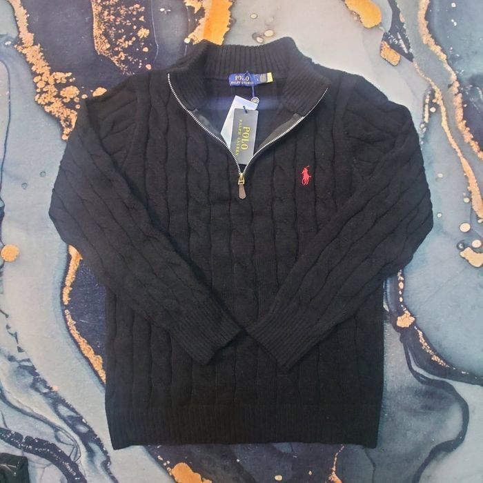 Half zip Ralph Lauren noir 1/4 col camionneur torsadé logo brodé rouge taille L - photo numéro 1