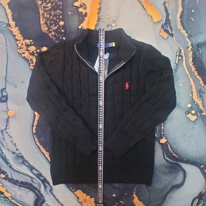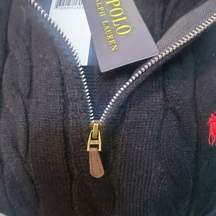 Half zip Ralph Lauren noir 1/4 col camionneur torsadé logo brodé rouge taille L - photo numéro 8