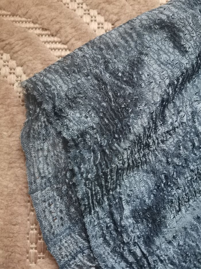 Foulard bleu légèrement ajouré Longueur : 155cm Largeur : 34 cm