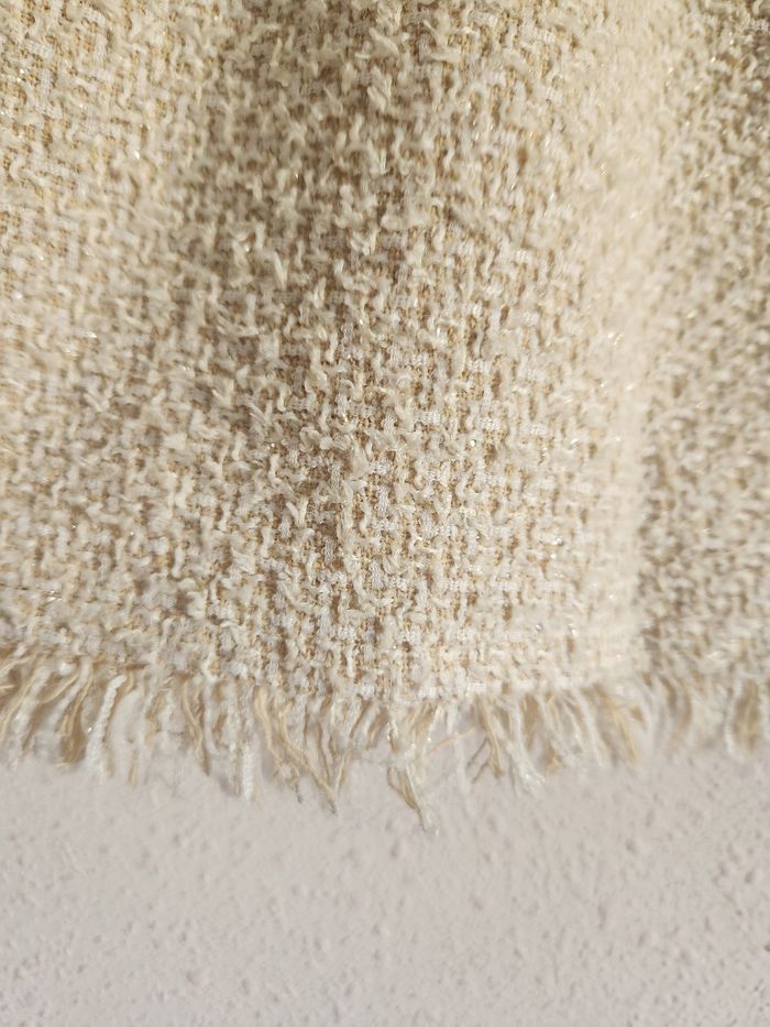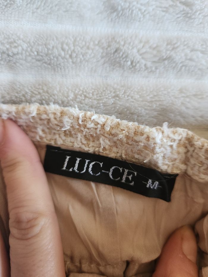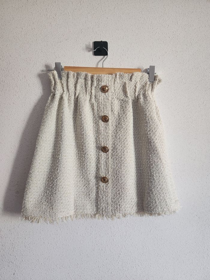 Jupe Luc-Ce en tweed blanc cassé avec fil légèrement brillant, élégante et féminine. Entièrement doublée pour plus de confort, avec boutons décoratifs dorés sur le devant. Détails : - Marque : Luc-Ce - Taille : M (convient à un 36 / petit 38) - Longueur : 46 cm - Coloris : blanc cassé - Matière effet tweed avec fil brillant - Entièrement doublée - Boutons décoratifs - Très bon état Pièce chic et facile à porter avec une blouse, un pull fin ou un blazer, idéale pour une tenue élégante au quotidien ou pour une occasion. Maison non-fumeur. Envoi rapide et soigné. #JupeTweed #LucCe #JupeFemme #BlancCasse #TailleM #ModeFemme #LookChic #SecondeMain