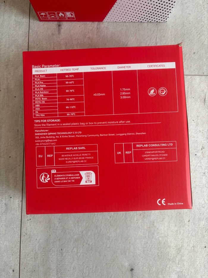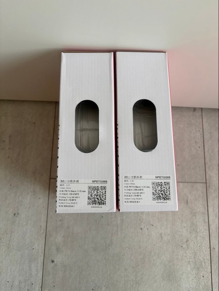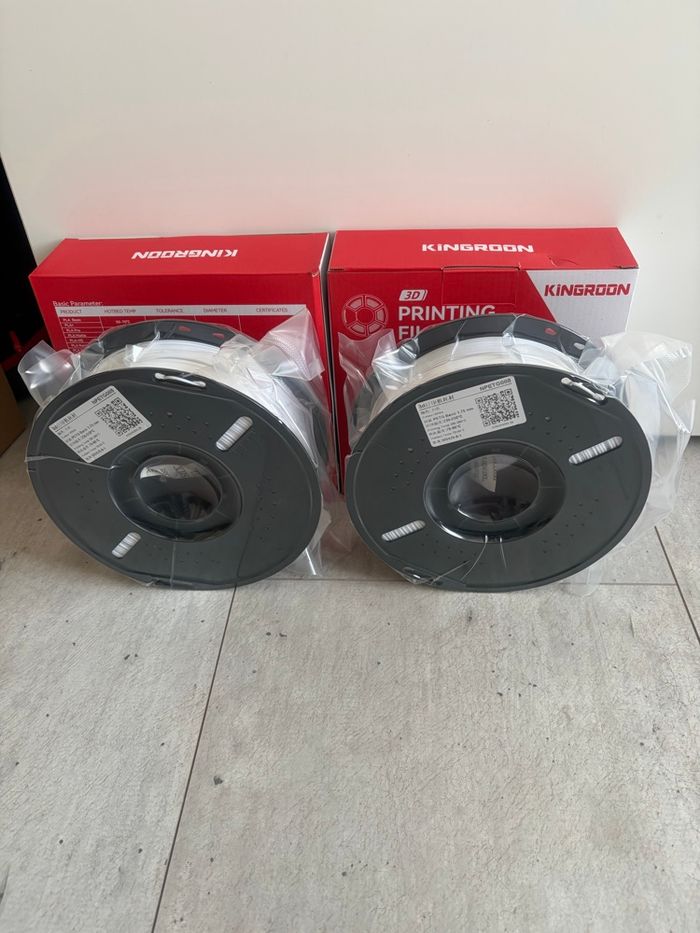 Je vends ce lot de 2 bobines de filament PETG blanc de la marque Kingroon, chaque bobine pèse 1 kg. - Type de produit : Lot de bobines de filament 3D - Marque : Kingroon - Matériau : PETG - Couleur : Blanc - Quantité : 2 bobines - Poids total : 2 kg - Diamètre : 1,75 mm État neuf sous blister N'hésitez pas à me contacter pour toute question ! Envoie rapide et soigné