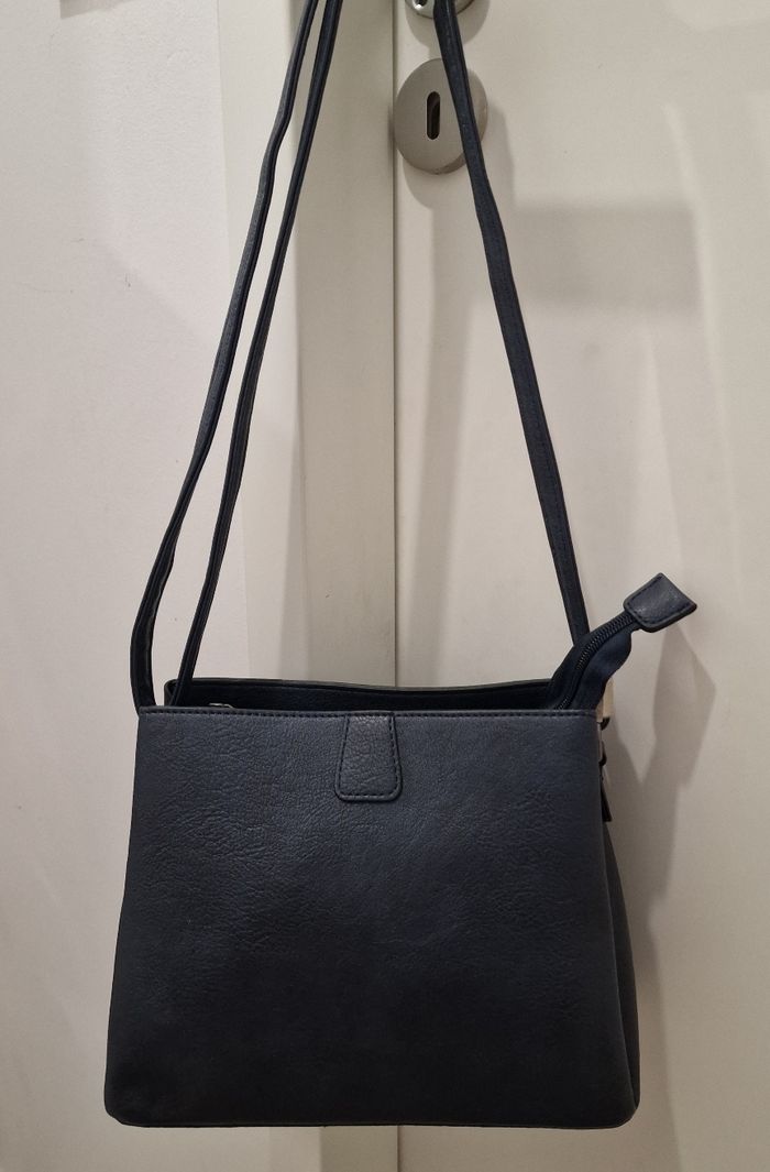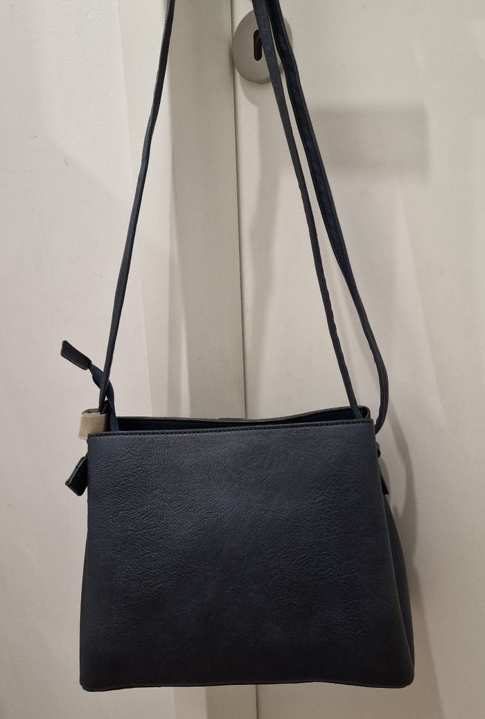Sac bandoulière de marque Laphrodite, neuf sans étiquette, jamais utilisé. Design élégant et intemporel, idéal pour un usage quotidien. -Couleur : bleu marine foncé -Matière : simili cuir grainé -Dimensions : • Largeur : 24,5 cm • Hauteur : 20 cm •Fermeture : zip sur le dessus ■ Intérieur : • 2 compartiments • 1 poche zippée centrale • 1 pochette ouverte (idéale pour téléphone ou clés) -Bandoulière réglable Format pratique, léger et chic, parfait pour la ville, le travail ou les sorties. 📦 Envoi soigné ou remise en main propre selon préférence.