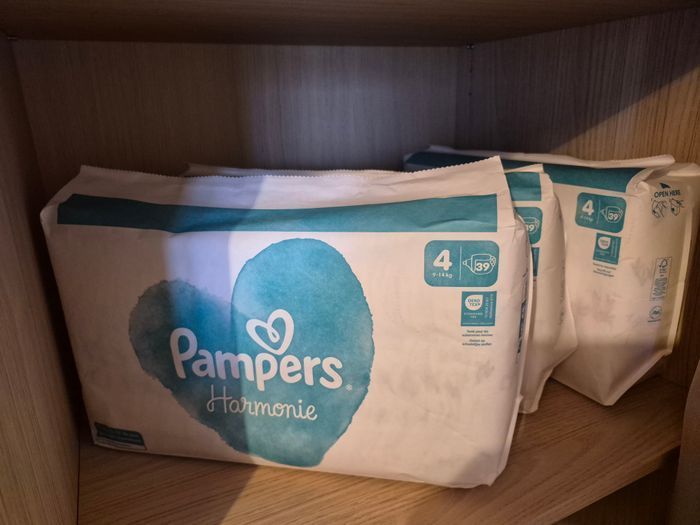 Lot de 3 pack de 39 couches soit 117 couches au total. Pampers Harmonie taille 4. Les paquets sont neufs, jamais ouverts.